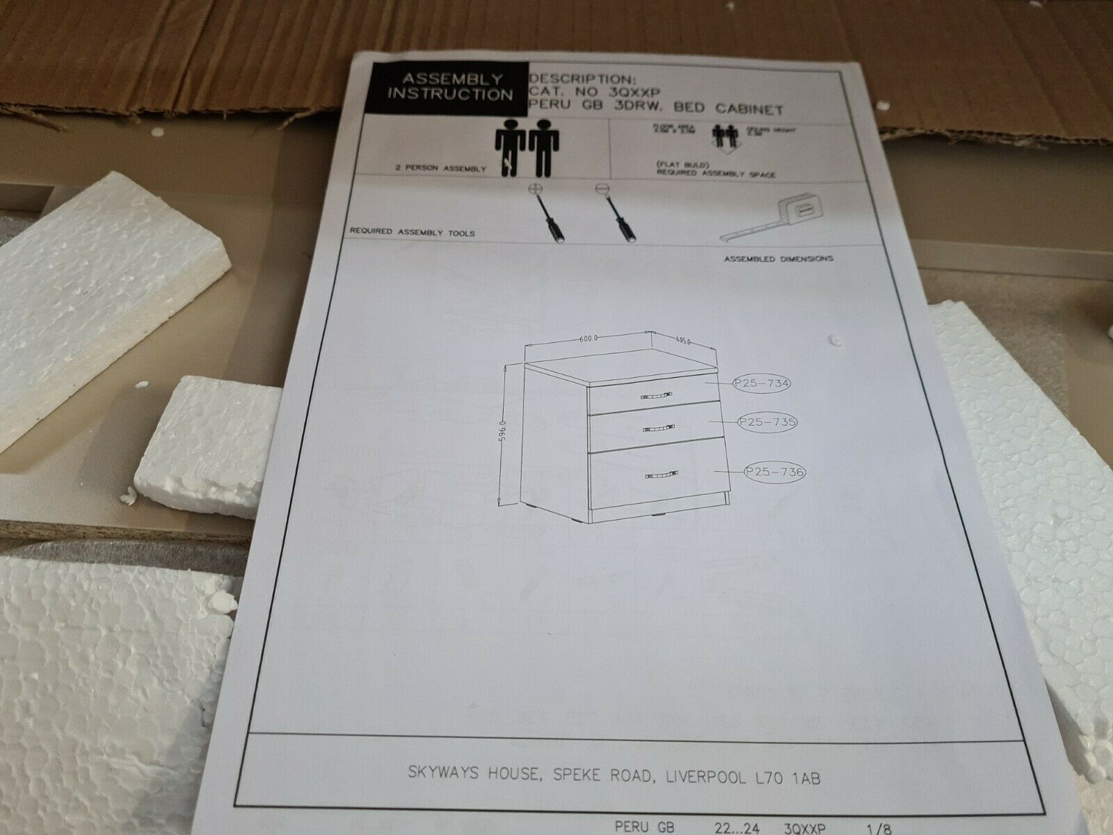 Home Essentials Peru 3 Drawer Bedside Cabinet White Easy-Glide Metal Runners