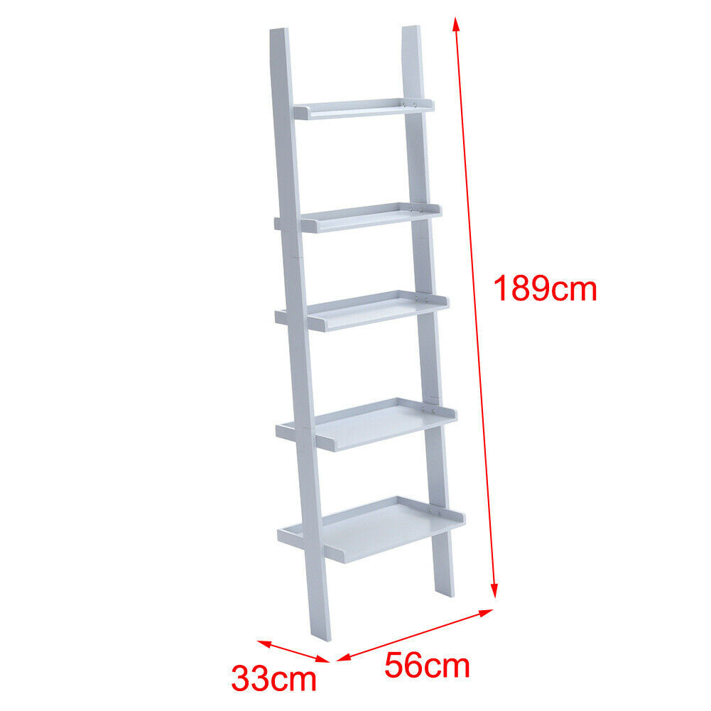 Home Grey Leaning Ladder Shelf Bookcase 5 Tier Shelving Unit Wooden Storage Rack