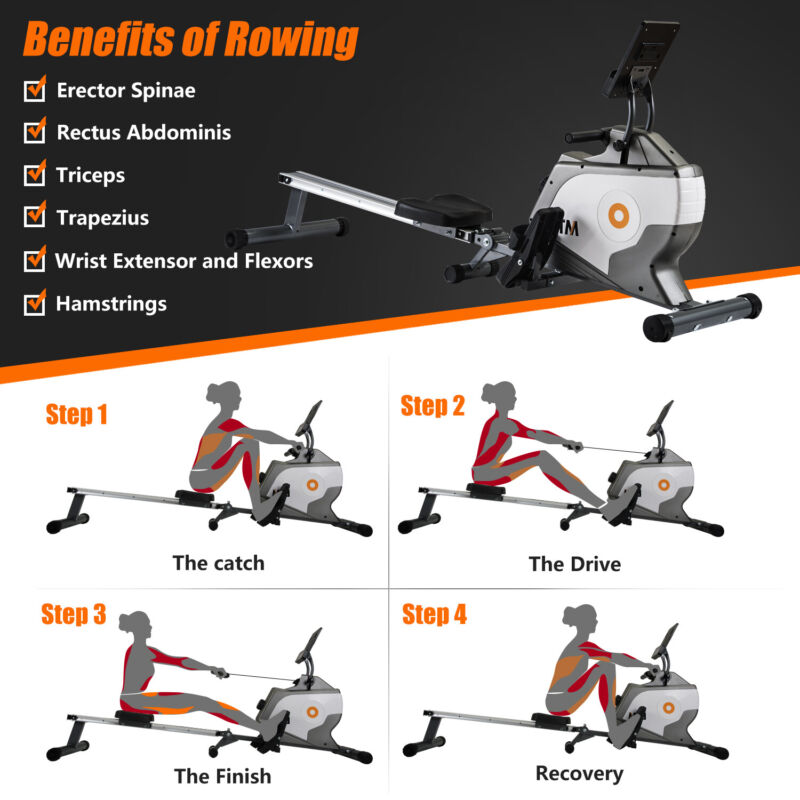 Home Gym Folding Magnetic Resistance Rowing Machine LCD 8 Levels Fitness Cardio