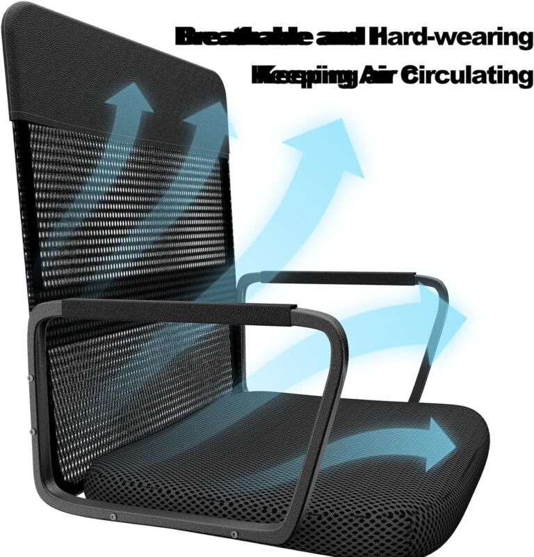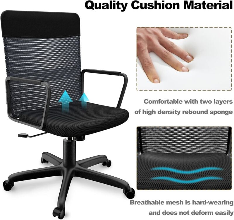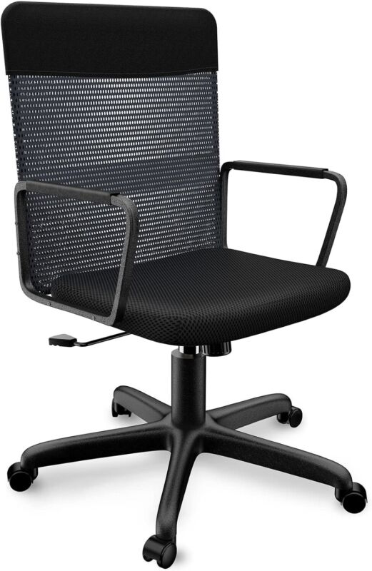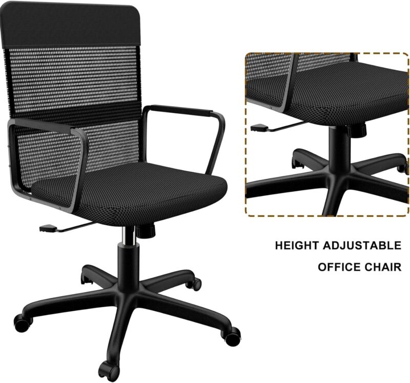 Home Office Chair Leather Computer Chair Adjustable Study Chair with Arms Black
