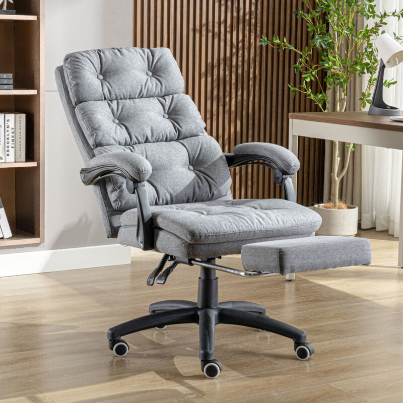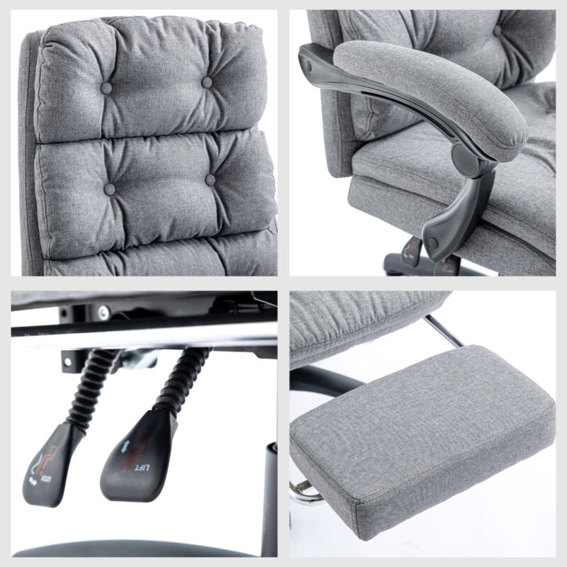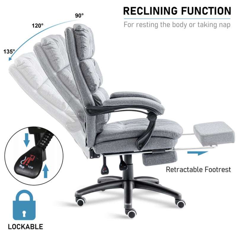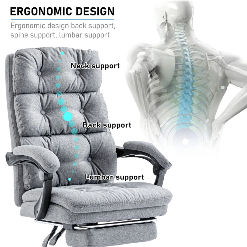 Home Office Chair Recliner Swivel Adjustable Linen Fabric Computer Desk Chair
