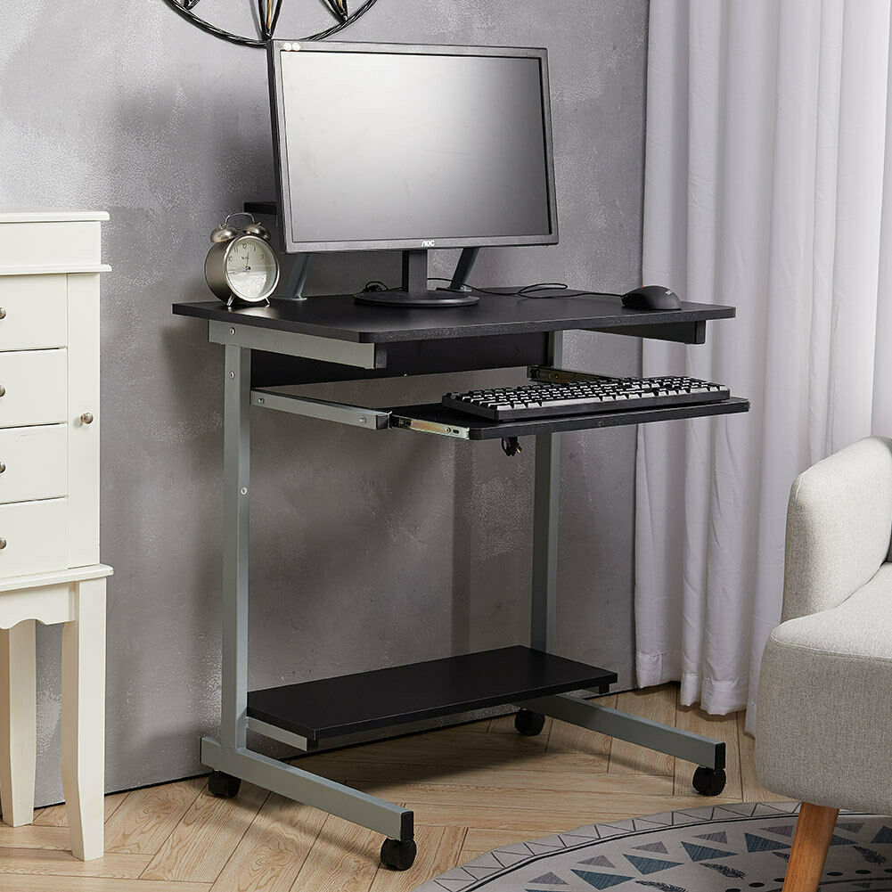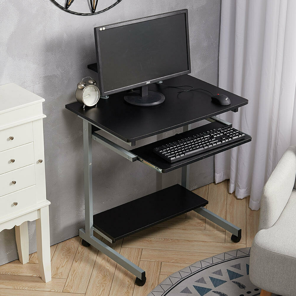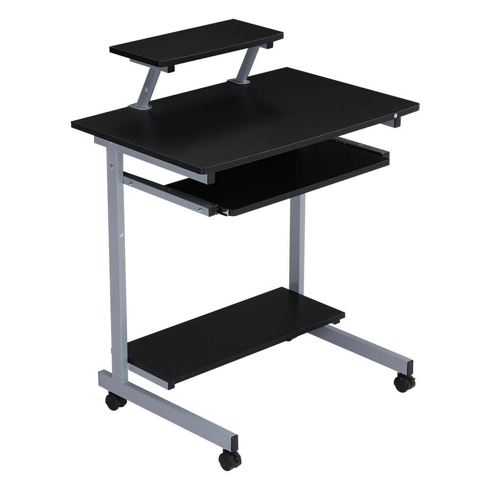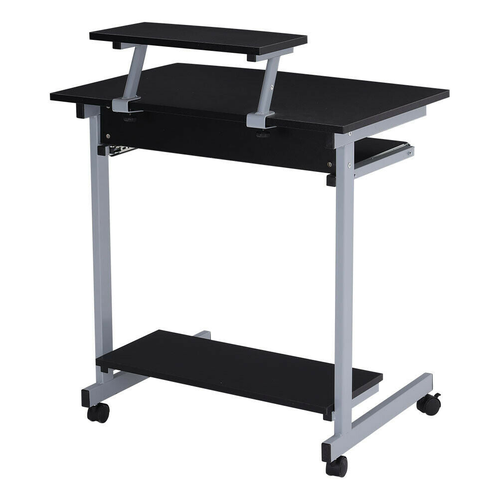 Features: Flat Pack, Sliding Keyboard Shelf, With Monitor Stand, With Shelves, With Wheels