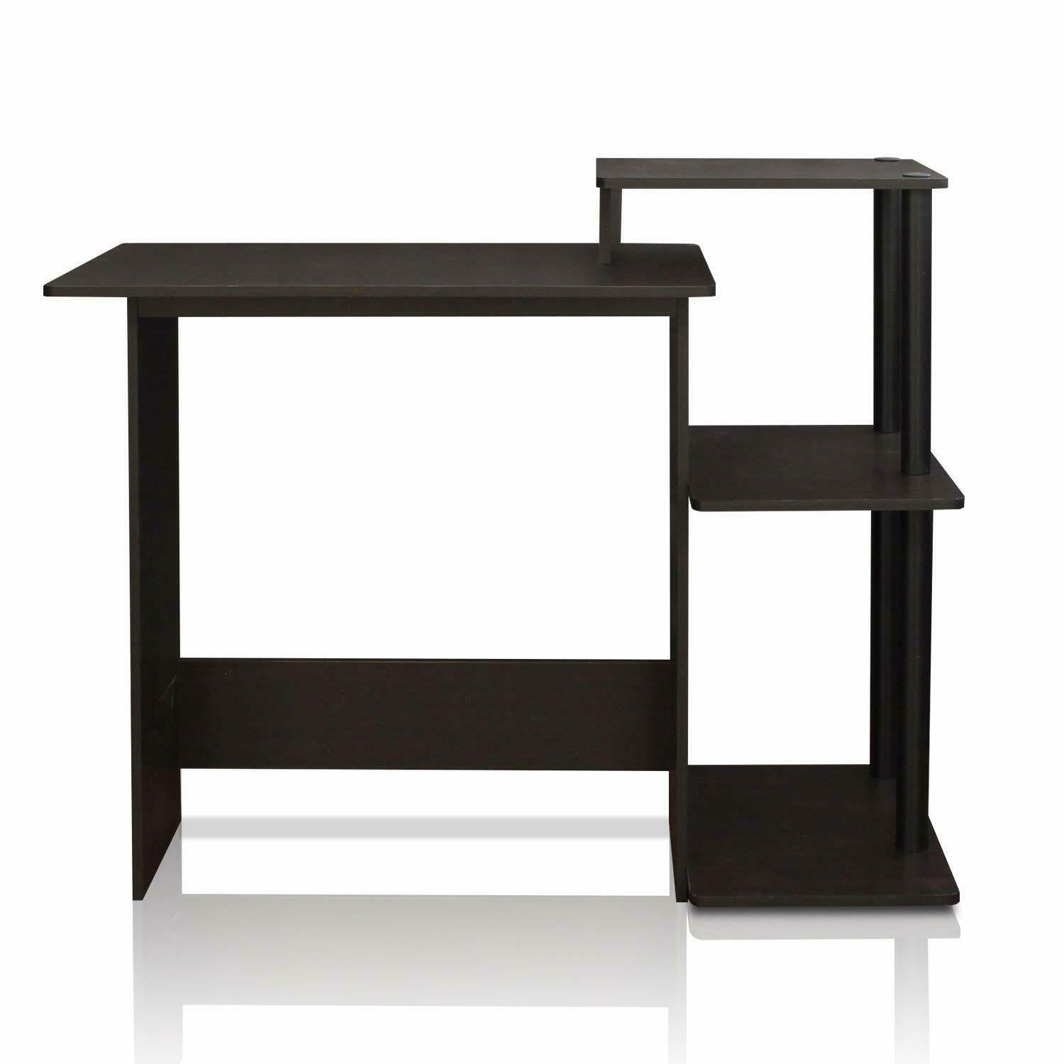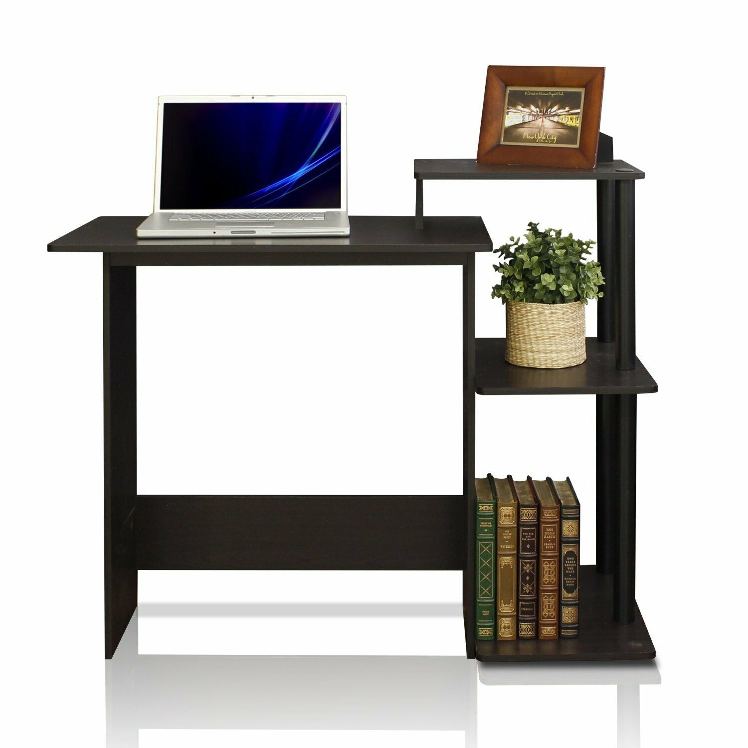 Home Office Wooden Study Desk with 3 Shelves - Brown and Black Finish