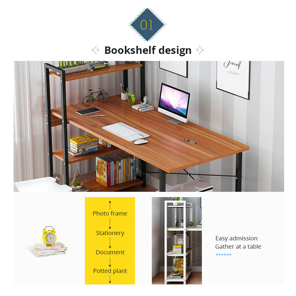 Home Wood Computer Desk PC Laptop Table Office Study Simple Workstation Shelves