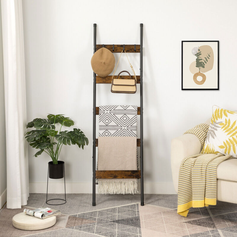 Blanket Ladder Towel Rack Towel Ladder 5-Tier Wall-Leaning Blanket Rack
