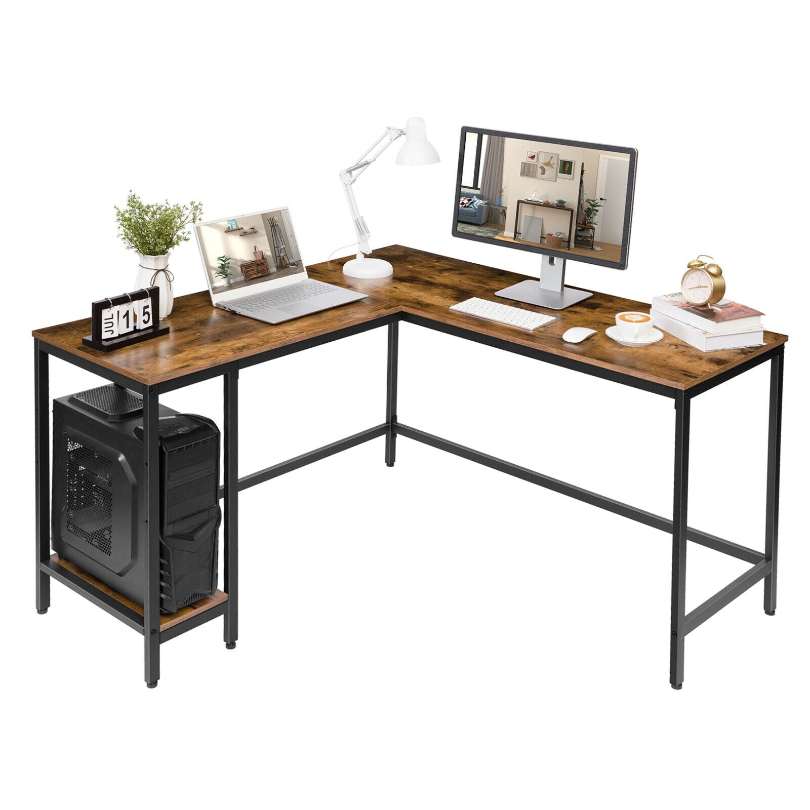 HOOBRO Computer Desk L-Shaped Corner Desk Office Writing Desk with 2 Shelves