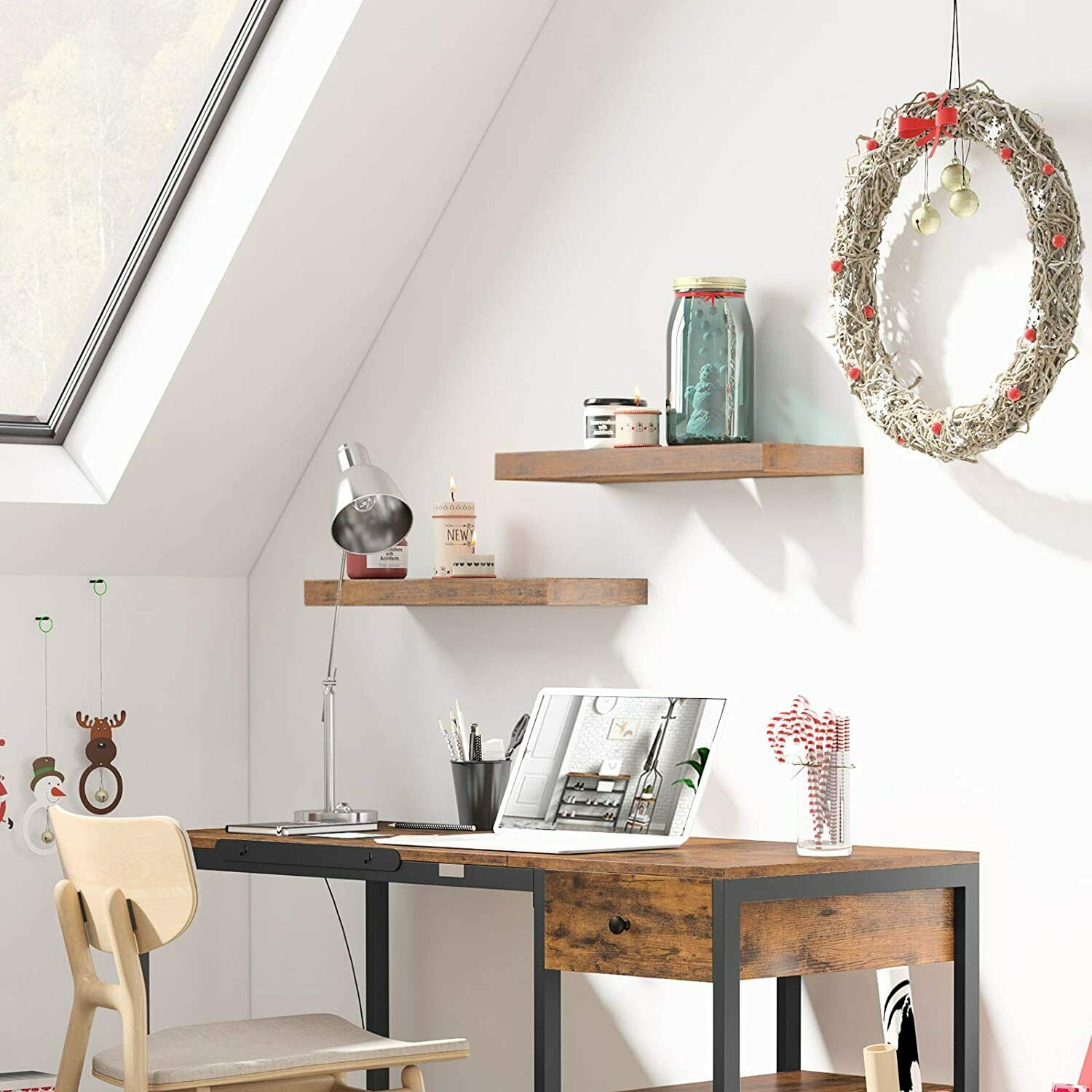 HOOBRO Set of 2 Wall Floating Shelves Wall Mounted Shelves Decor Storage Shelves