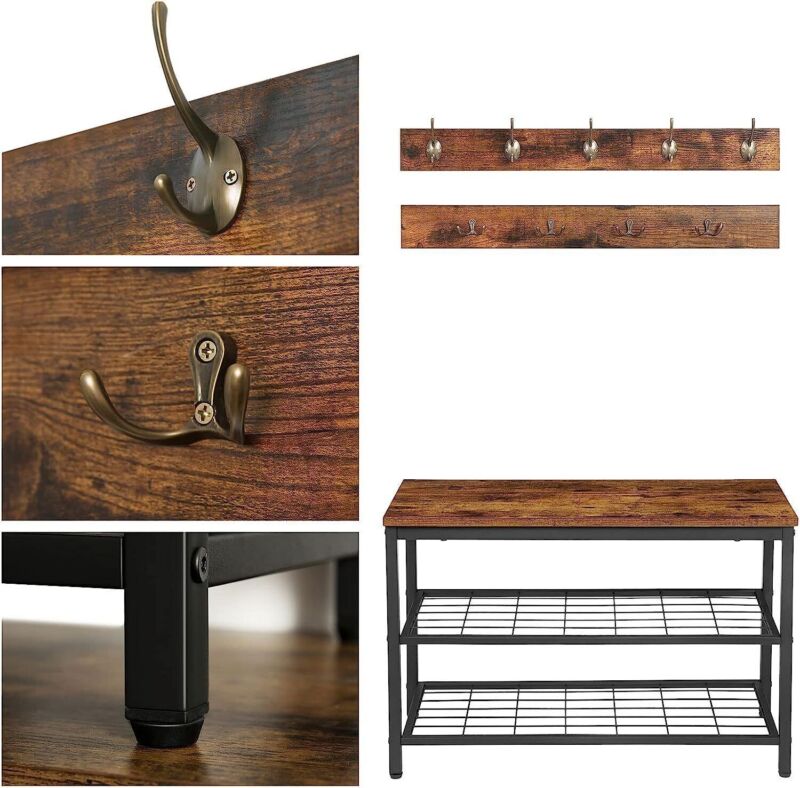 Shoe Rack with Coat Rack Hanger Hallway Shoe Bench Set Coat Stand