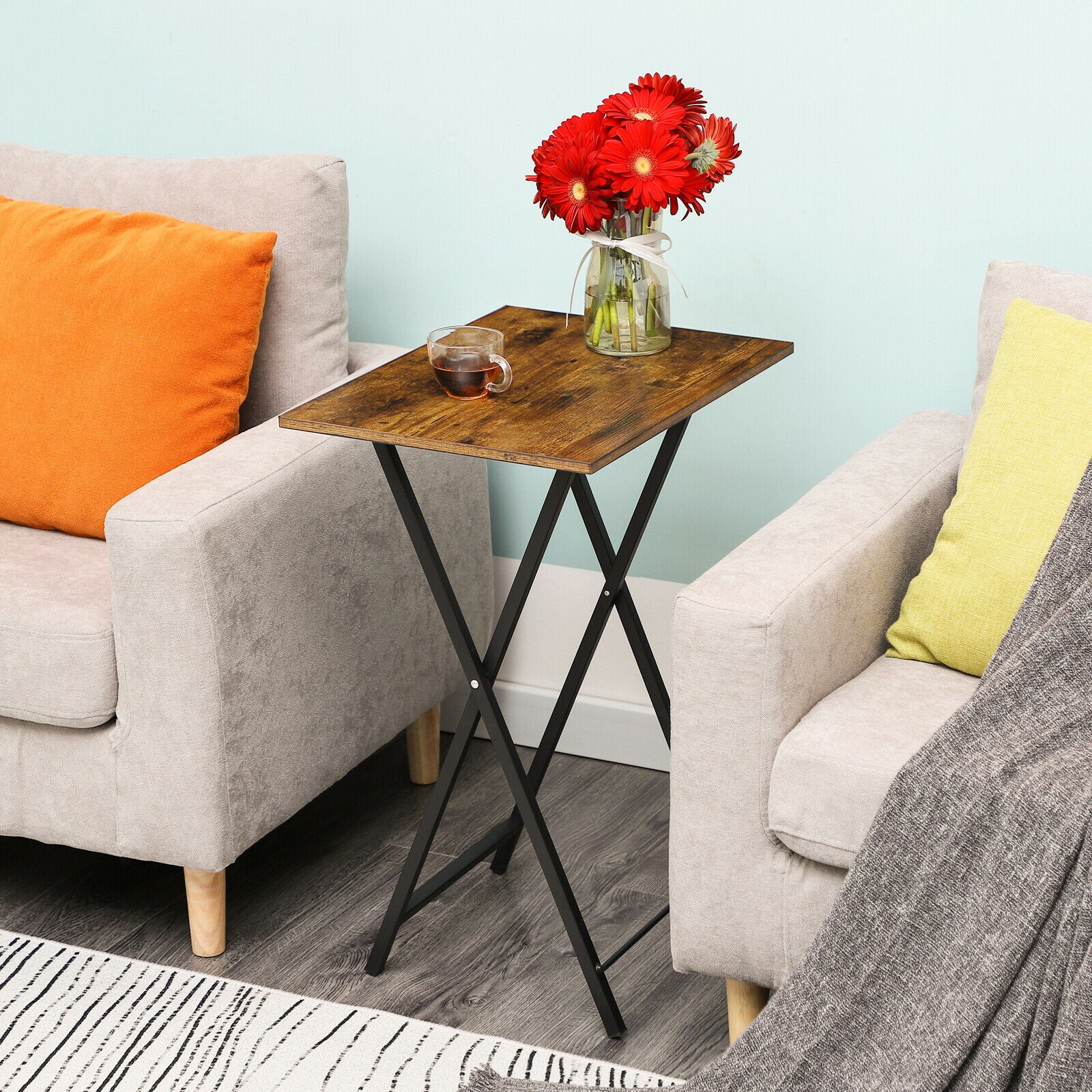 HOOBRO Side Table 2 Set Folding Tray Table TV Trays End Table Stable Metal Frame