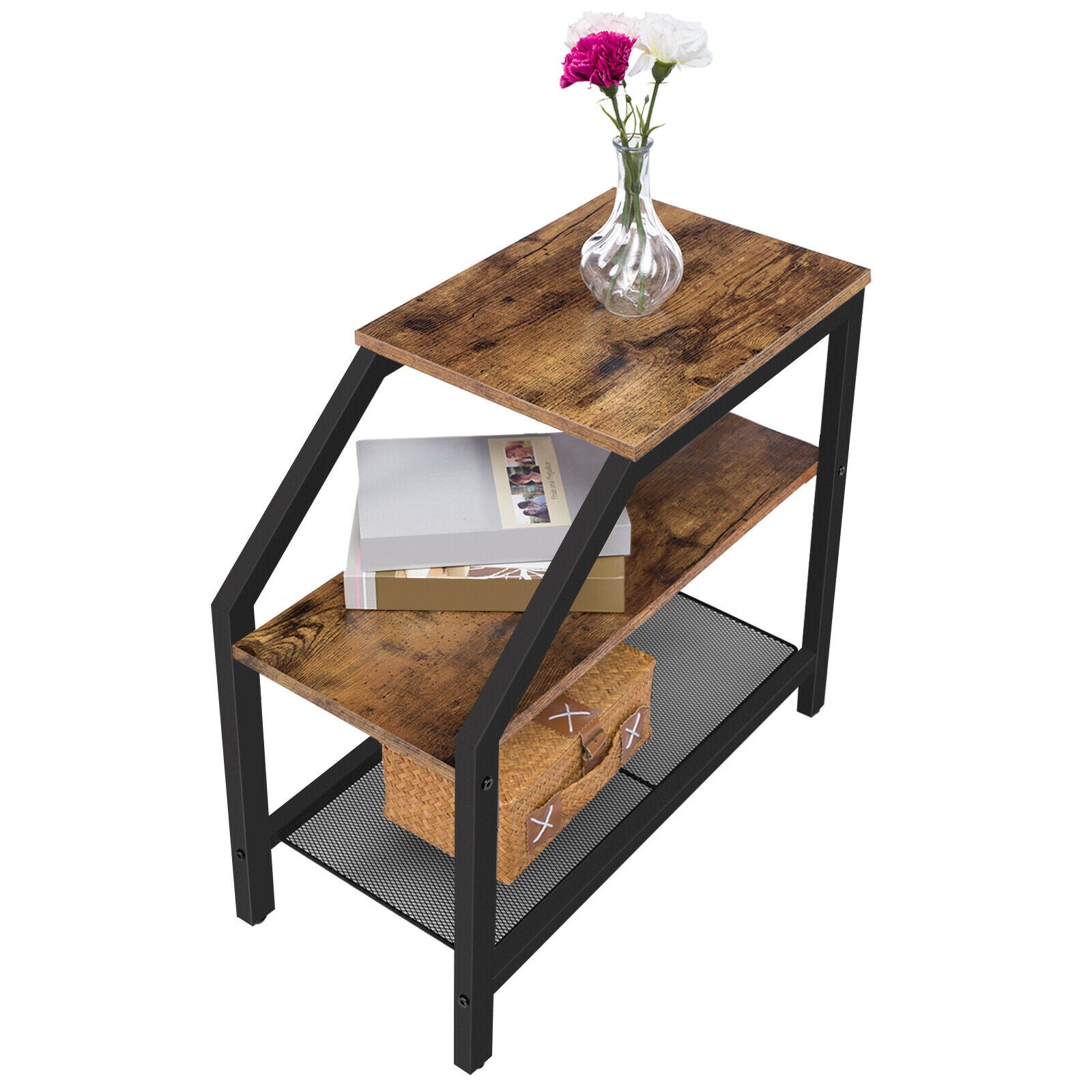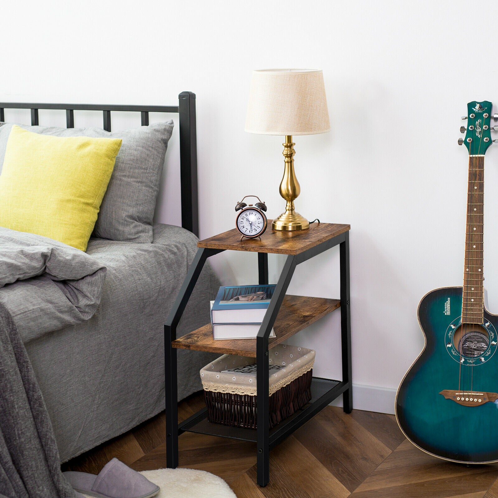 HOOBRO Side Table Narrow Bedside Table with 3-Tier Shelves Industrial End Table