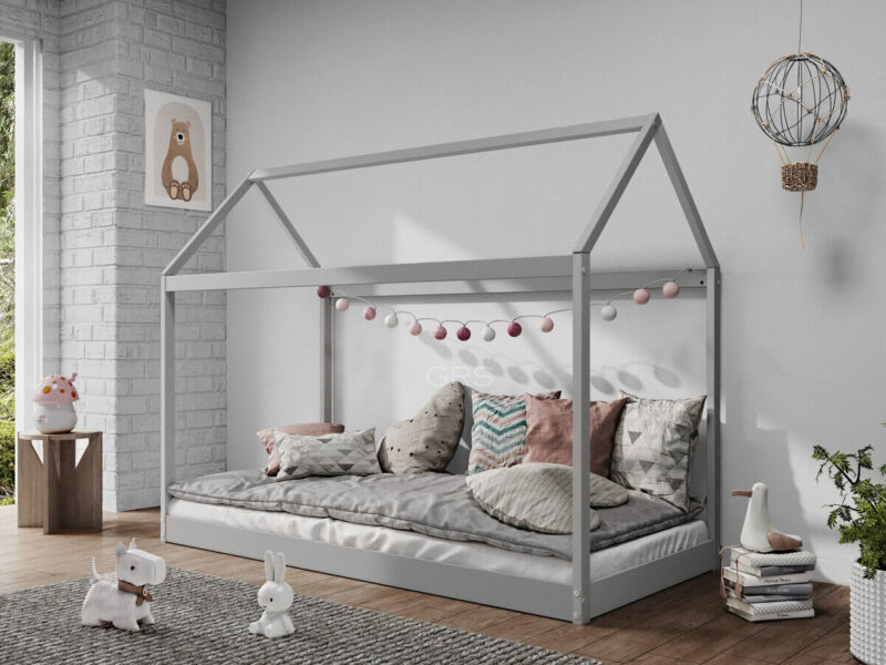 House Bed Frame 3FT Single Bed Solid Pine Frame for Kids Children with Mattress