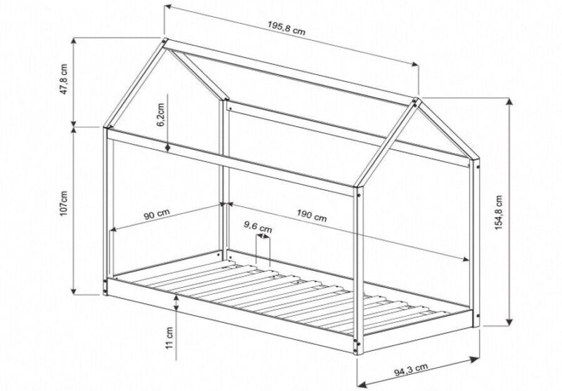 Features Flat Pack, With Slats, Flat Packed, Treehouse, Kids Bed, Various Colours, Home Assembly, House, Solid Wood, Pine, Mattress Option