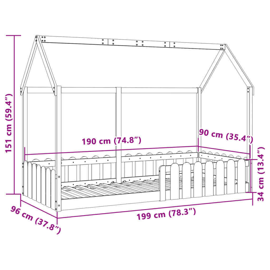 ' House Bed Frame 90x190 Solid Wood Pine T7Z0
