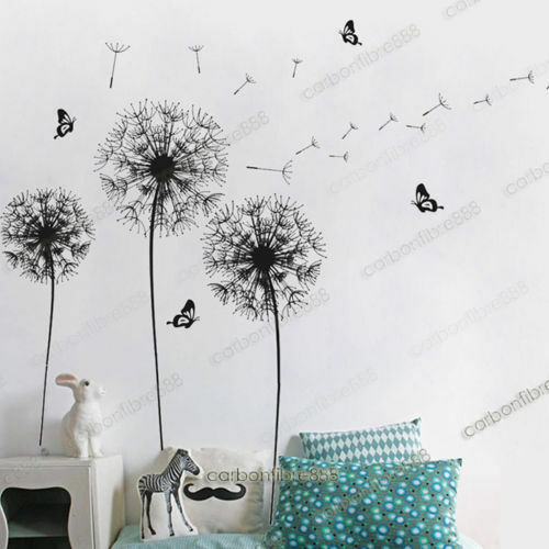 Huge Dandelion Butterfly Flowers Wall Stickers Art Decal Home DIY Vinyl Decor UK