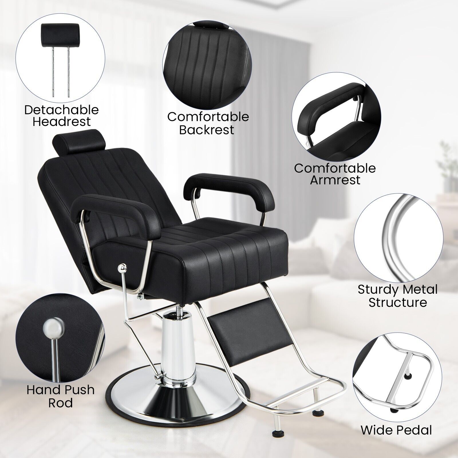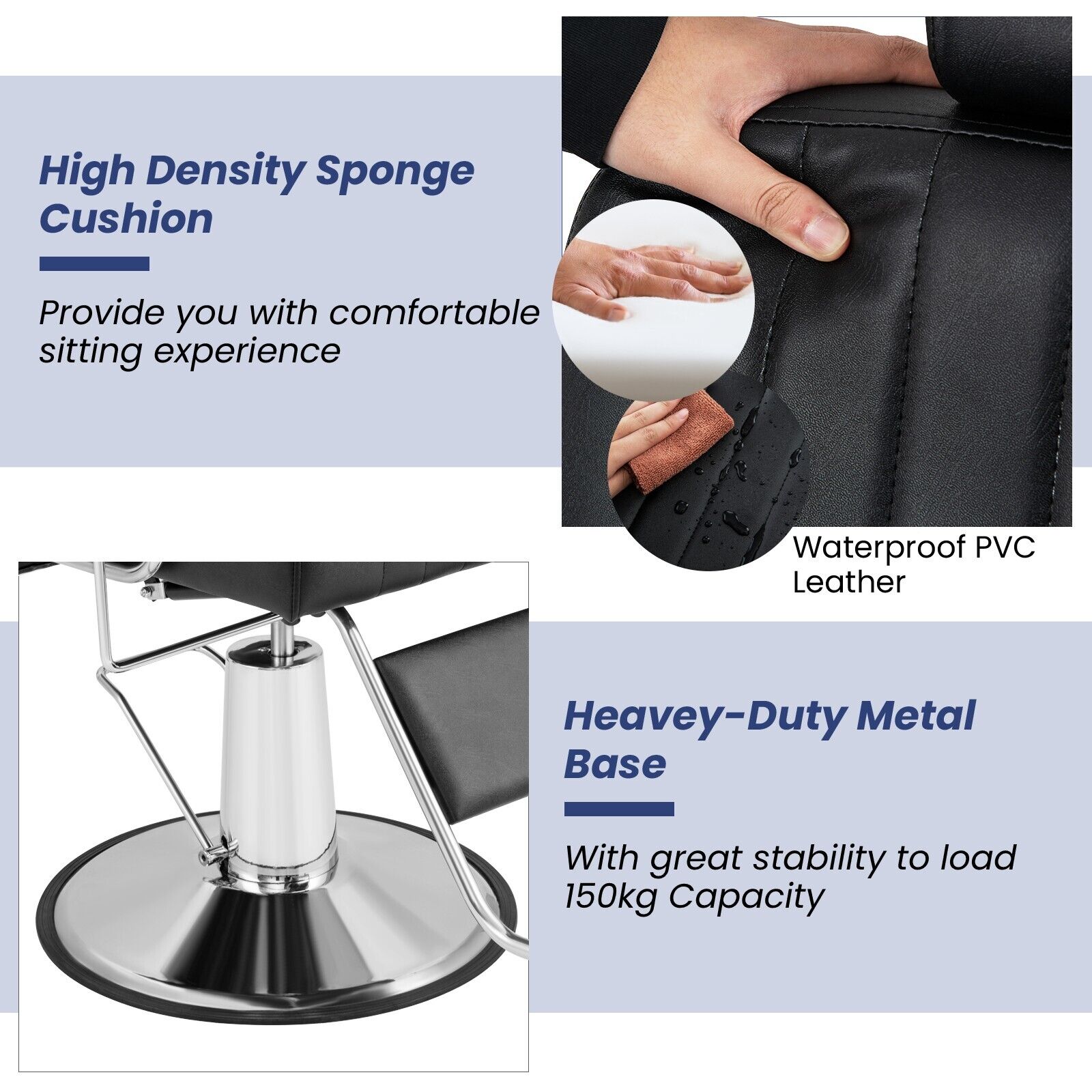 Hydraulic Barber Chair Salon Chair Height Adjustable 360° Swivel Reclining Back
