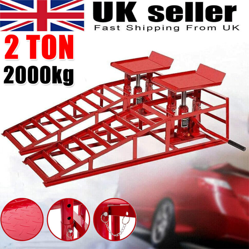 Hydraulic Car Ramps 2x Heavy Duty 2 ton Garage Van Lift Jack Height Adjustable
