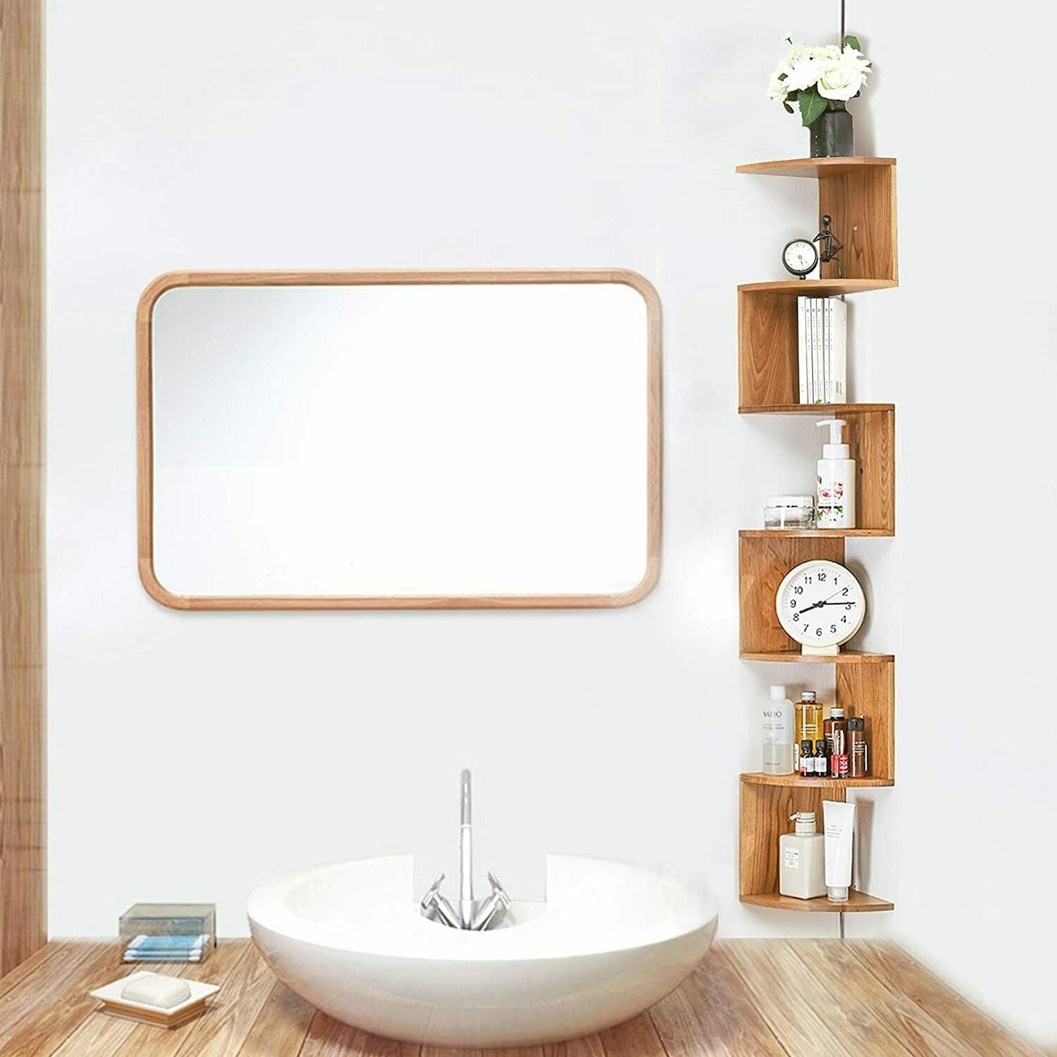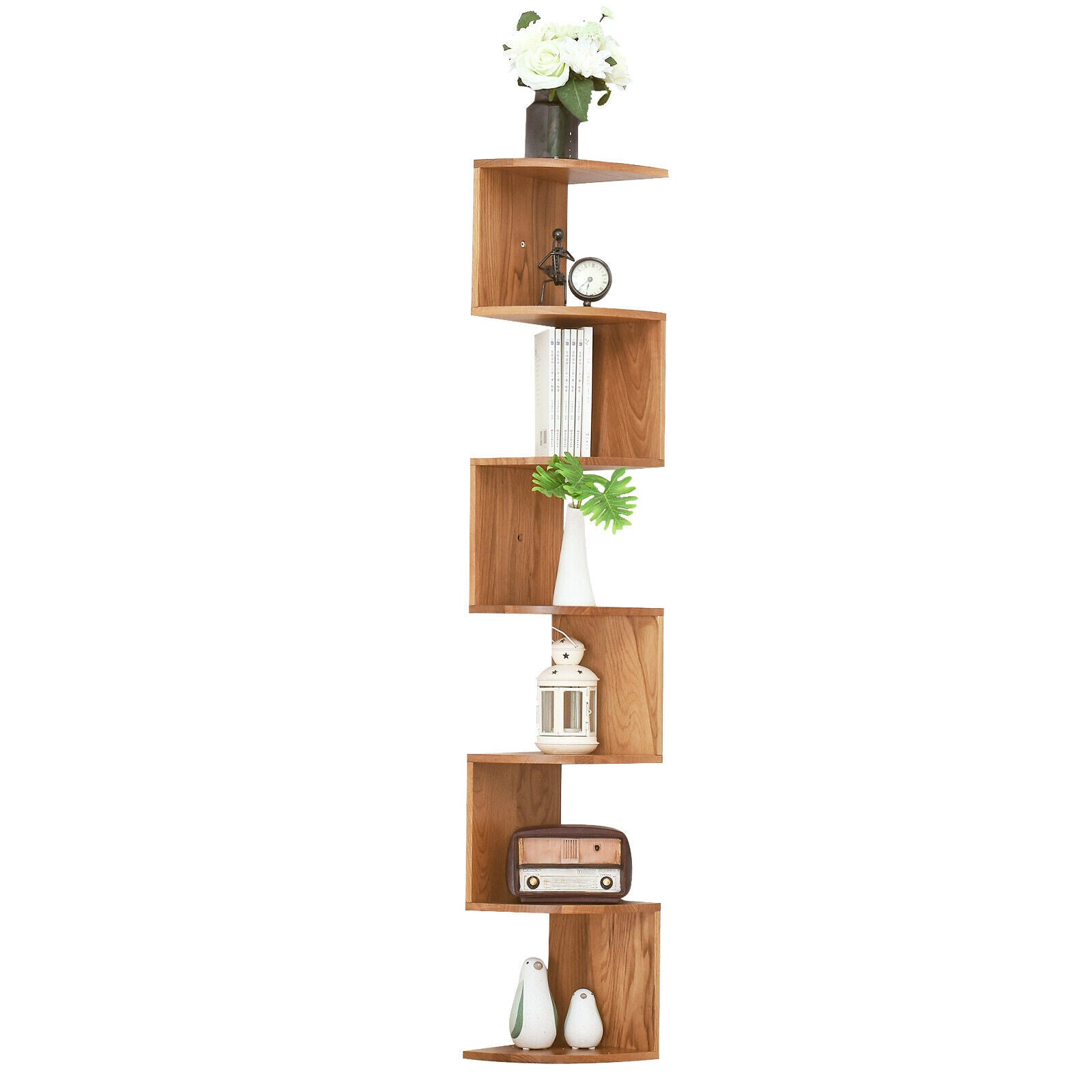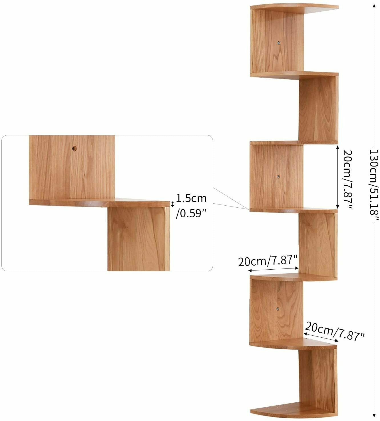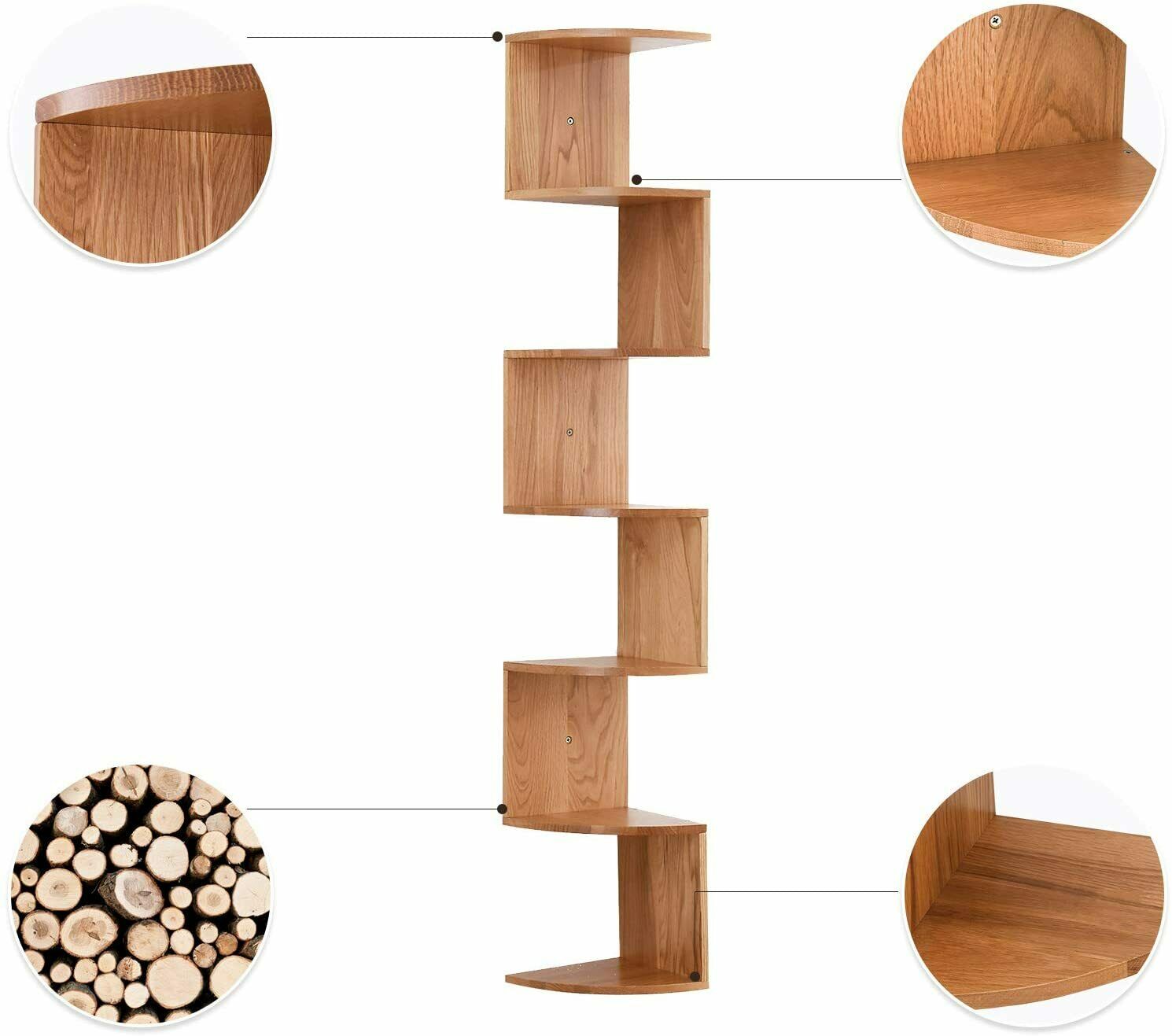 IBUYKE 7 Tier Zigzag Floating Corner Shelf Wall Mounted Storage Display Bookcase