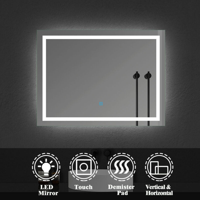 Features Fogless, Heated, Illuminated mirror, LED Lighted, Lighted, Touch Sensor, anti-fog, demister pad, fog free, led bathroom mirror, light up mirror