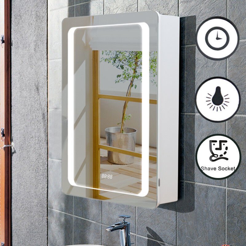 Illuminated LED Bathroom Mirror Cabinet Vanity Light Sensor Demister Pad Clock
