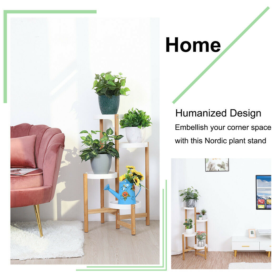 Indoor Corner Bamboo Plant Stand Round Planter Potted Holder End Table Display