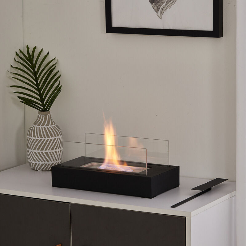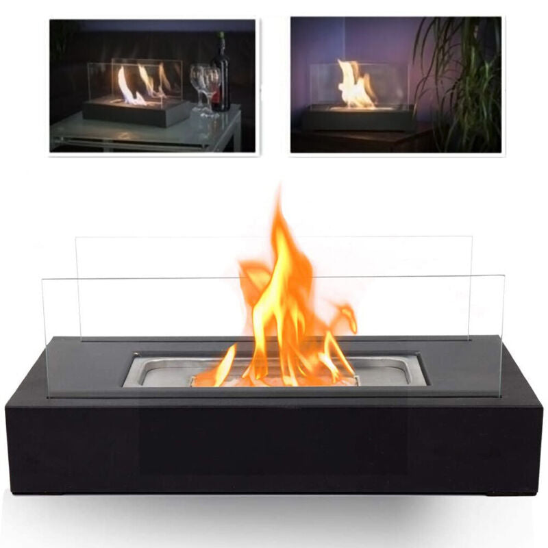 Indoor & Outdoor Bio Ethanol Fireplace Glass Top Burner Firebox Fire Pit Bowl UK