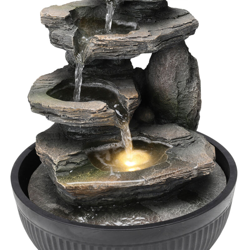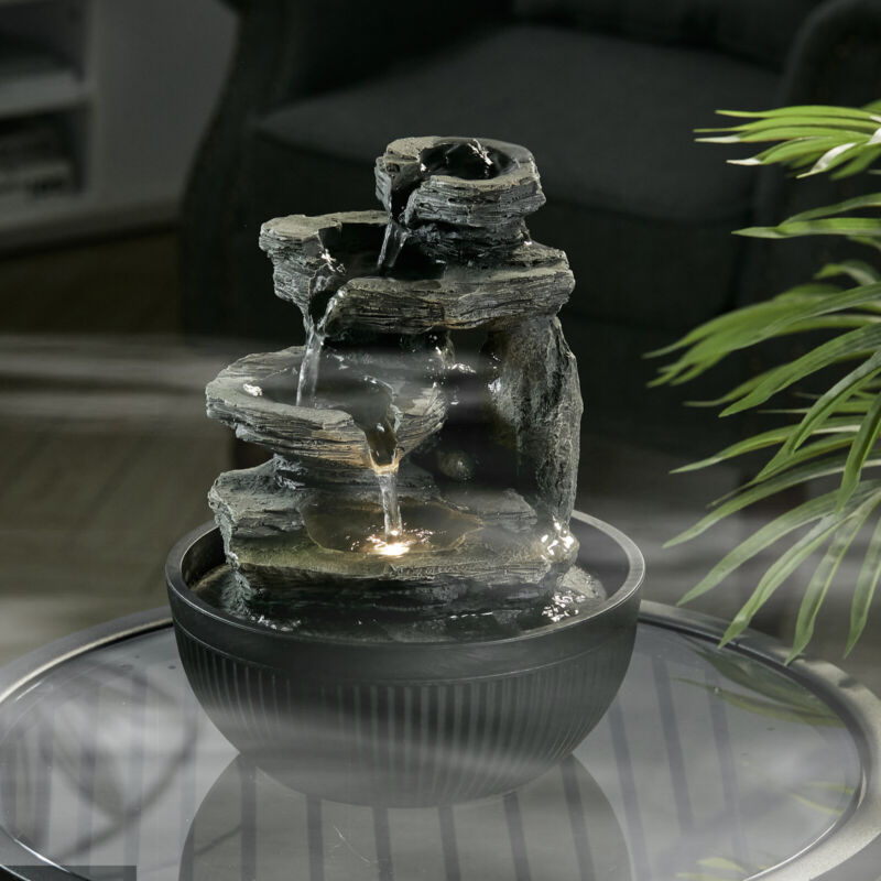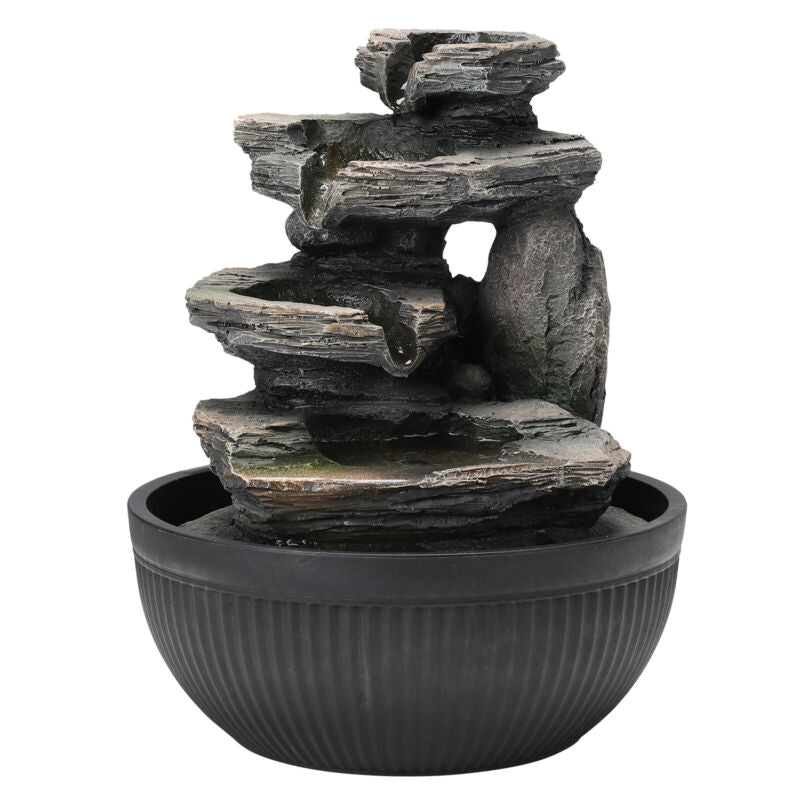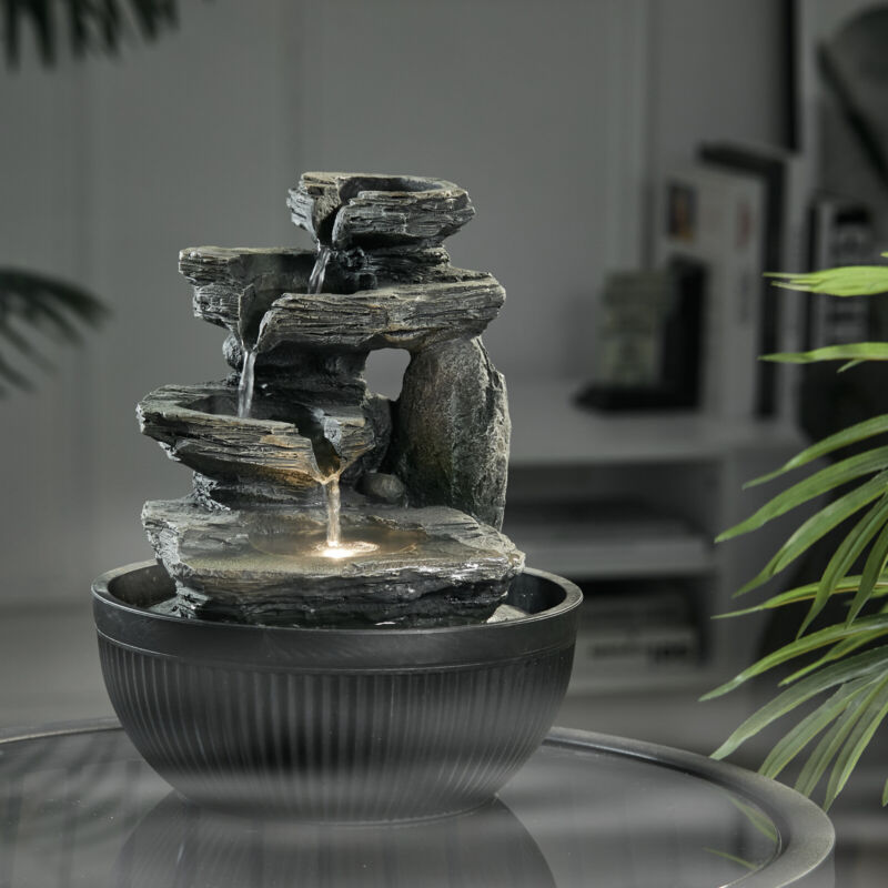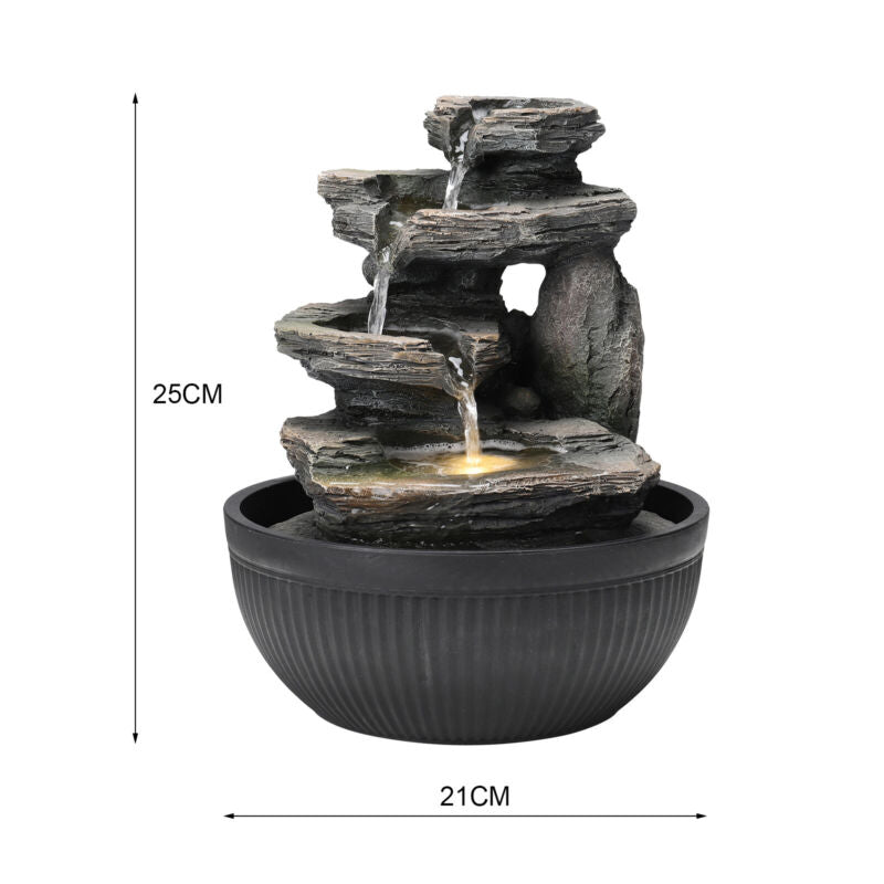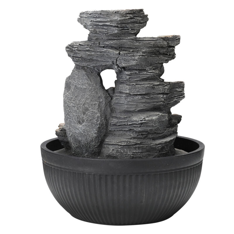 Indoor Stone Fountain Water Feature LED Lights Polyresin Statues Home Desk Decor