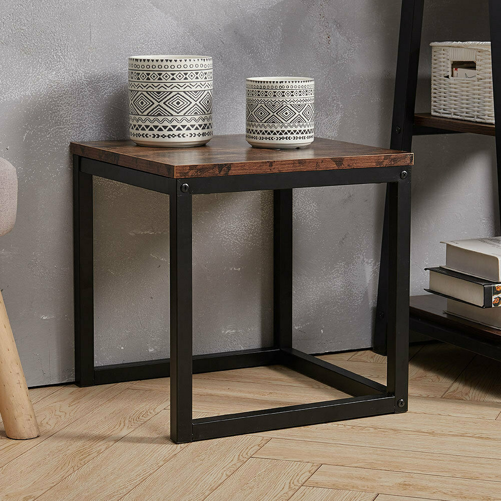 Indusrtial Wood Coffee Table Sofa Side End Table Bedside Lamp Table Metal Frame