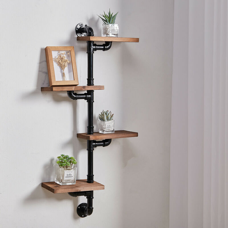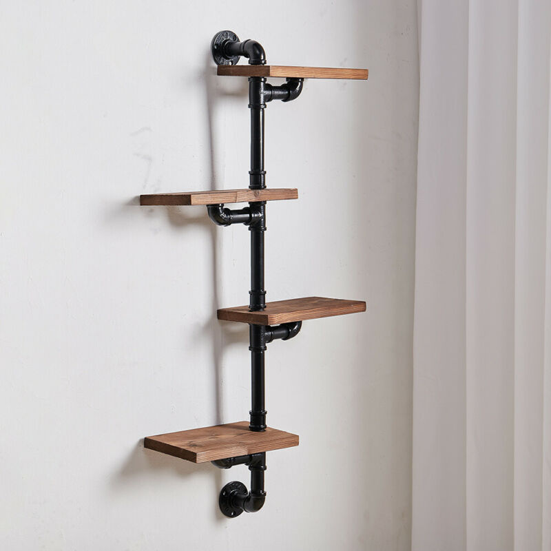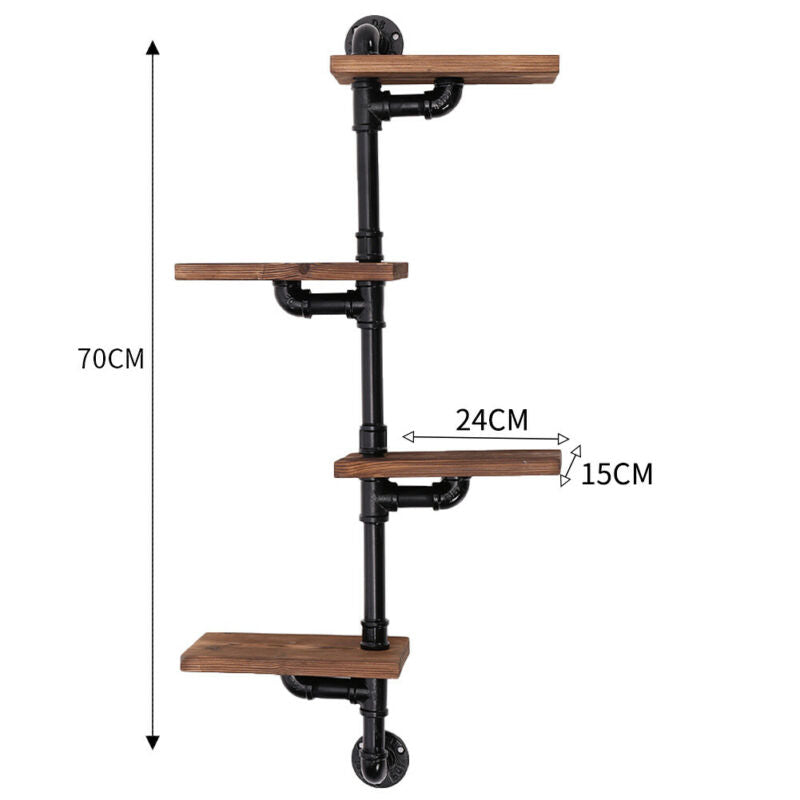 Industrial 4 Shelf Pipe Wall Shelves Floating Wood Storage Rack Unit Display UK