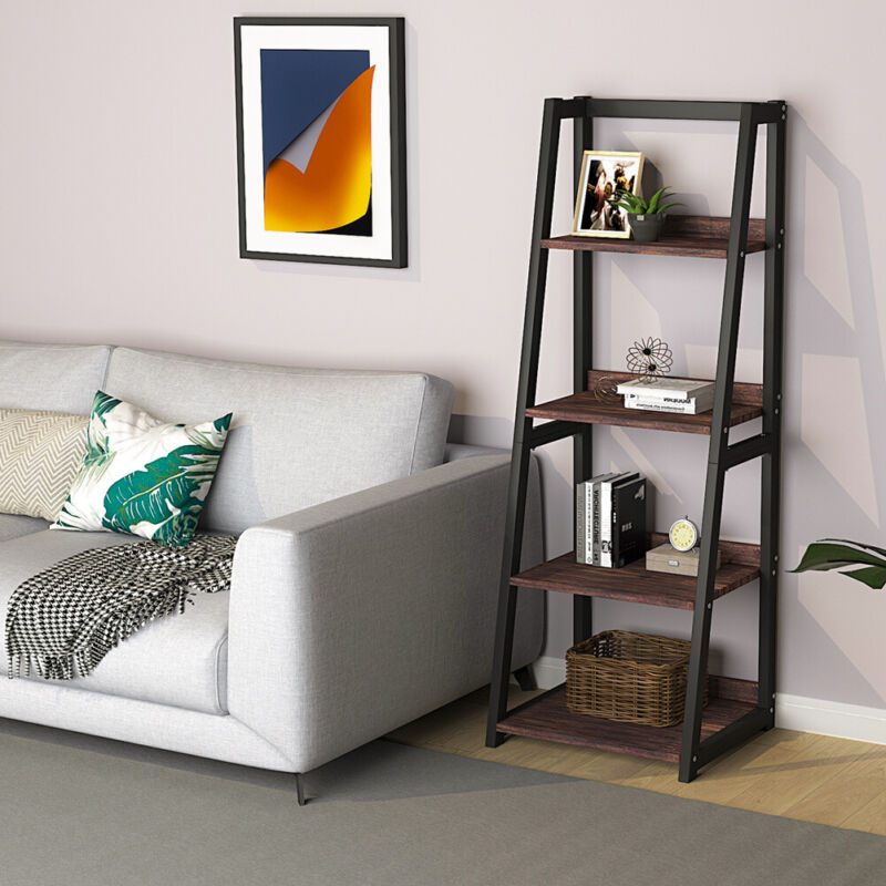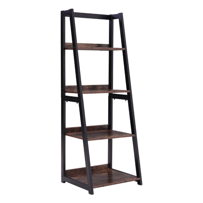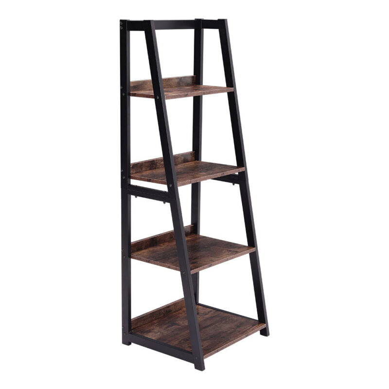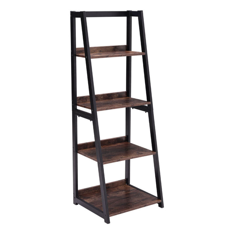 Industrial 4 Tier Bookcase Rustic Wood Shelving Unit Open Storage Display Shelf