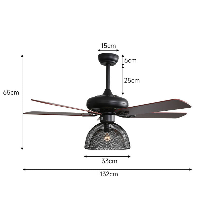 Industrial 52inch E27 Led Ceiling Fan Light with Remote Control Living Room Fans