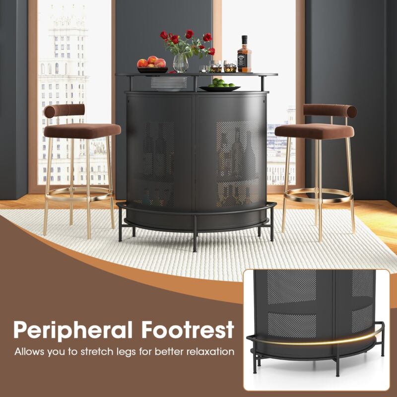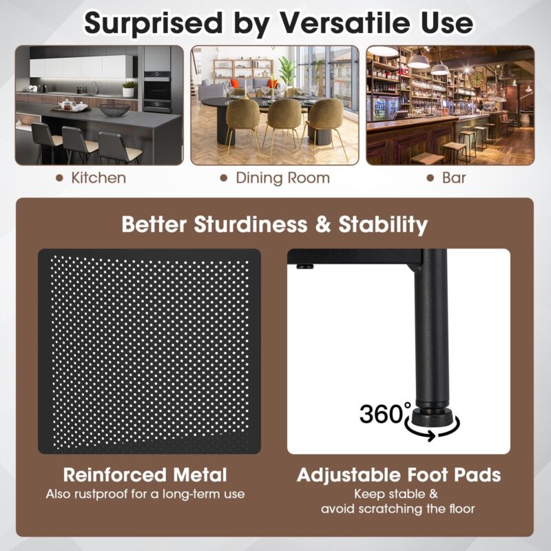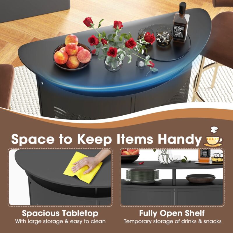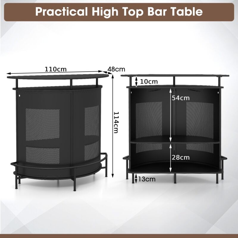 Industrial Bar Table Home Bar Kitchen Countertop Table W/ Storage Shelves