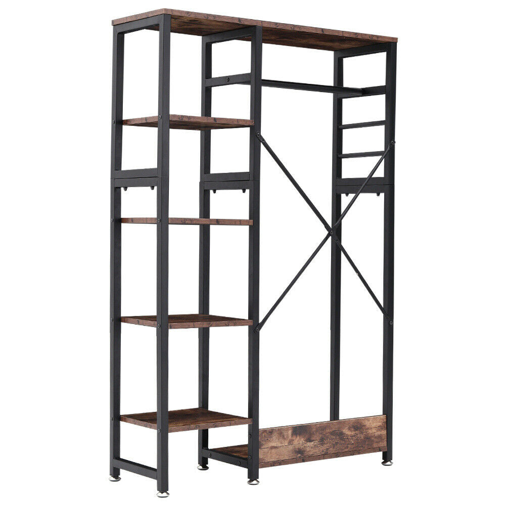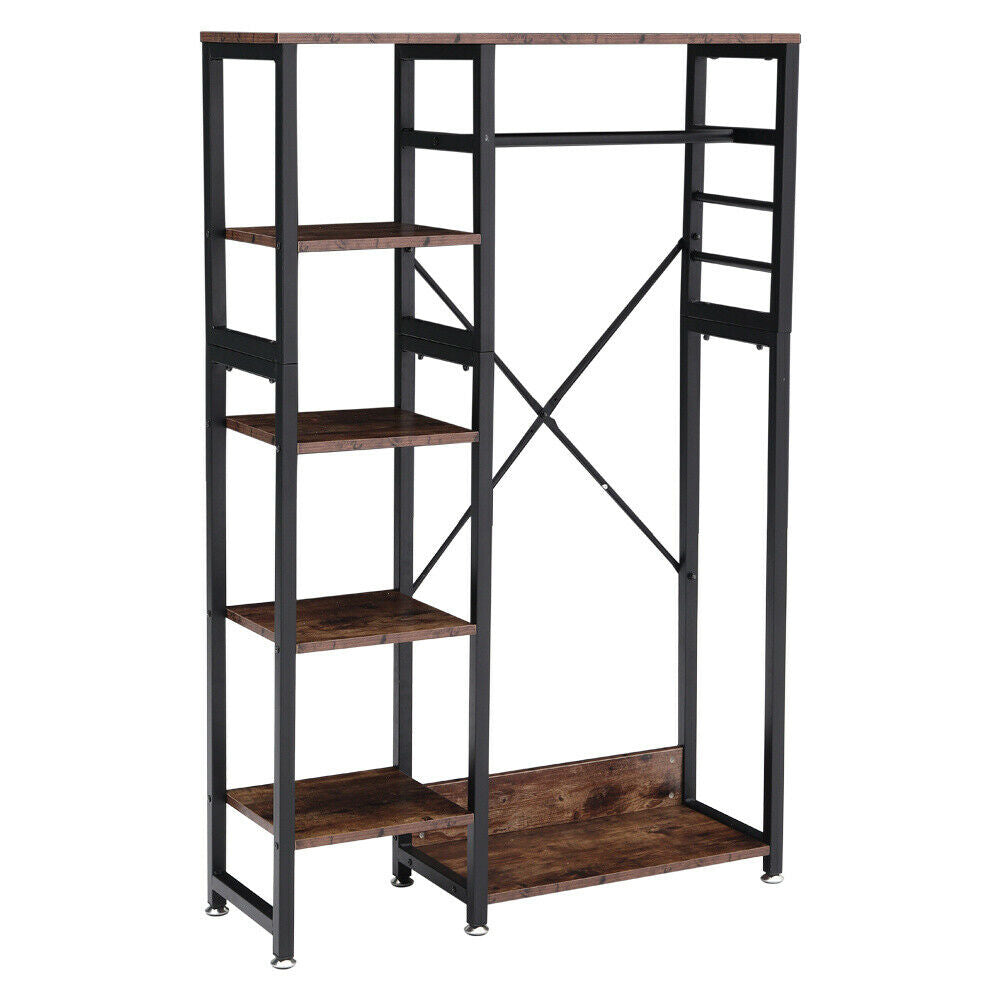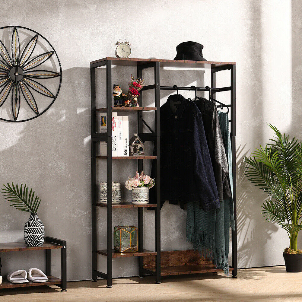 Industrial Bedroom Open Wardrobe Clothes Rail Rack Rustic Wood Metal Frame Shelf