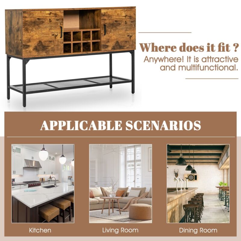 Industrial Buffet Sideboard Freestanding Kitchen Cupboard Console Table W/ Rack