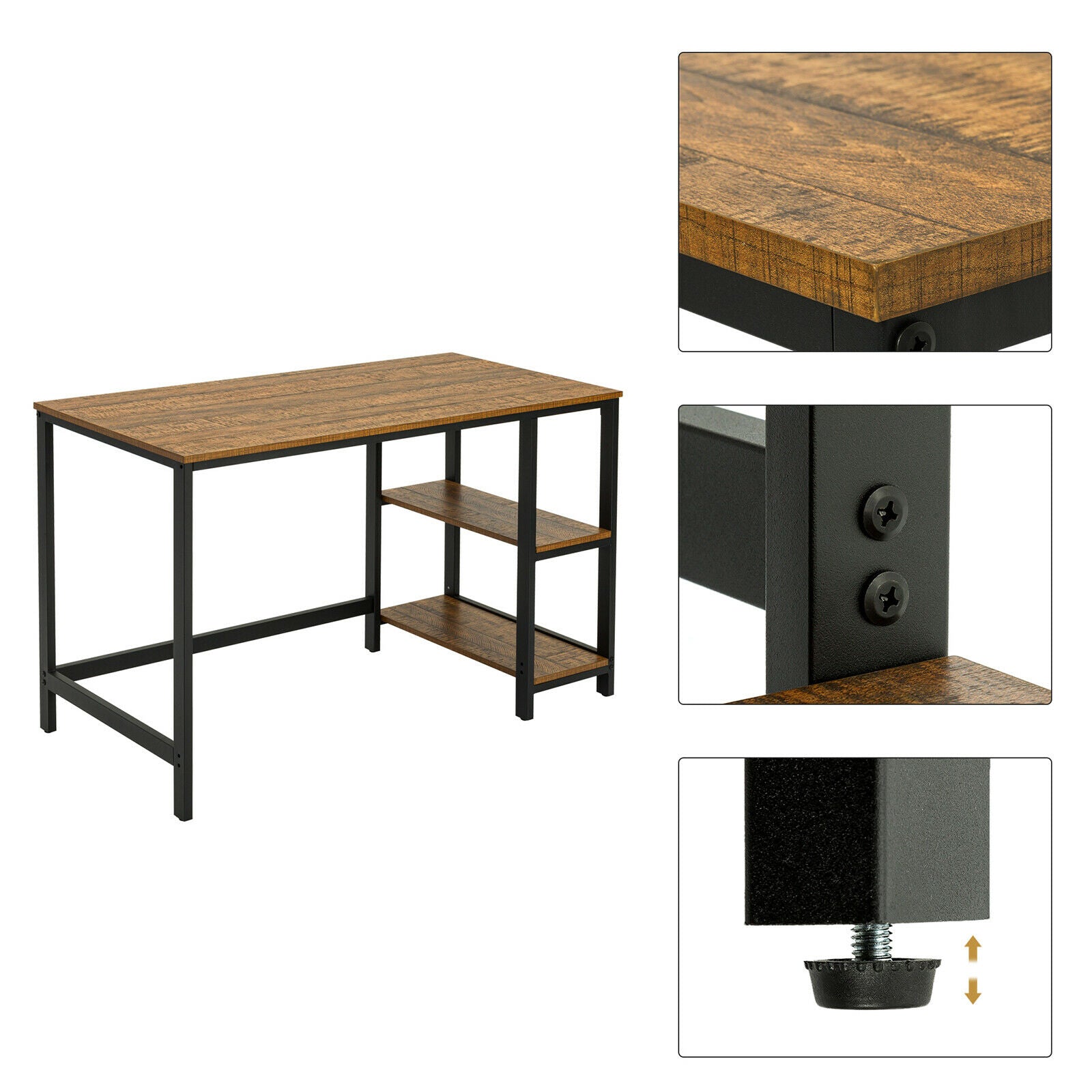 Industrial Computer Desk Writing Study Table PC Laptop w/ Shelves Workstation