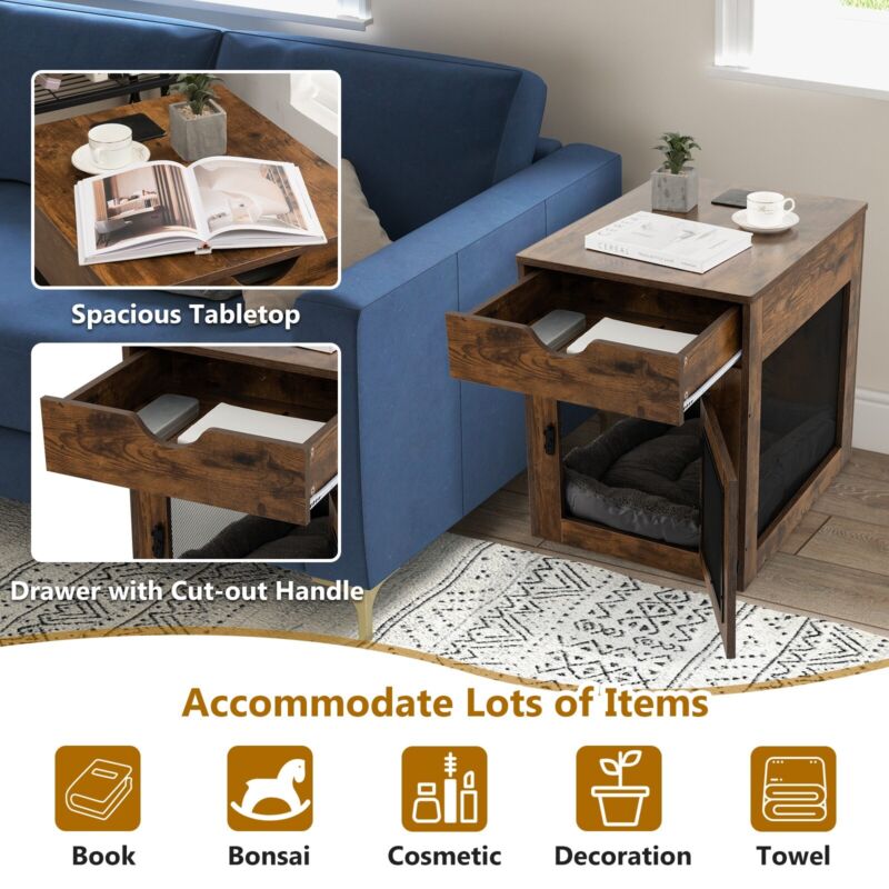 Industrial Dog Crate Decorative Dog Kennel End Table Indoor Dog House w/ Drawer