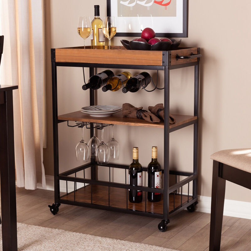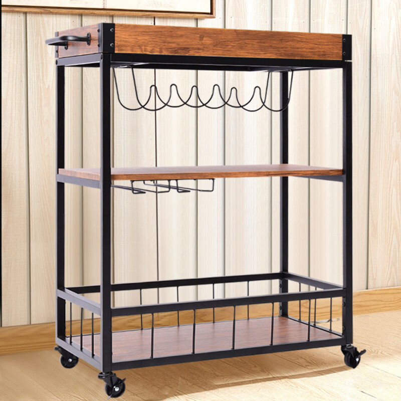 Industrial Drinks Trolley Kitchen 3 Tier Serving Cart Wine Bottles Glass Holder