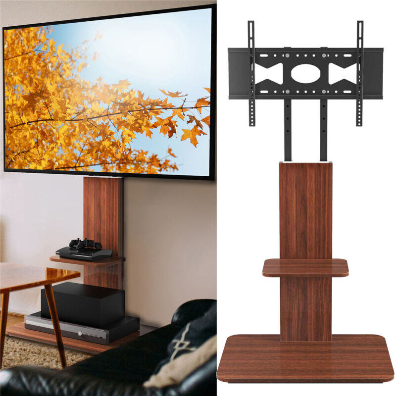 Industrial Floor TV Stand for 32-65 inch Large TV Mount w/ Wooden Base Hold 40kg