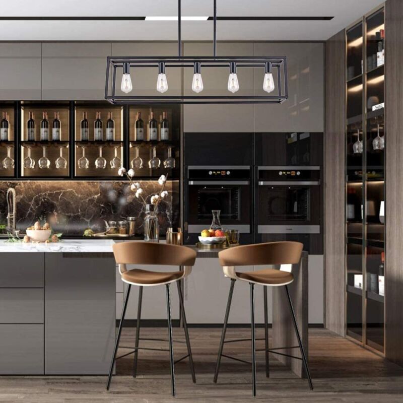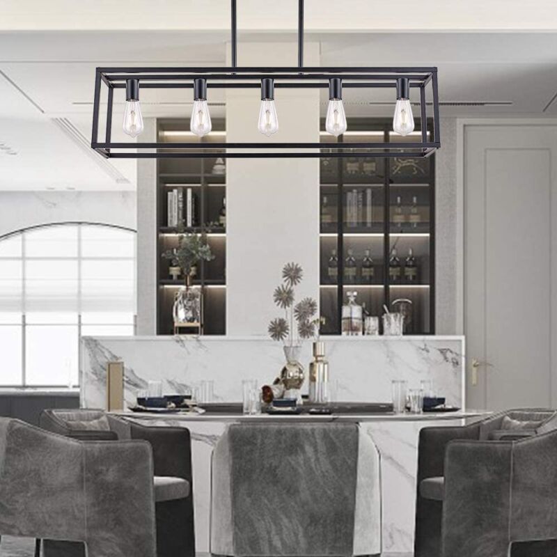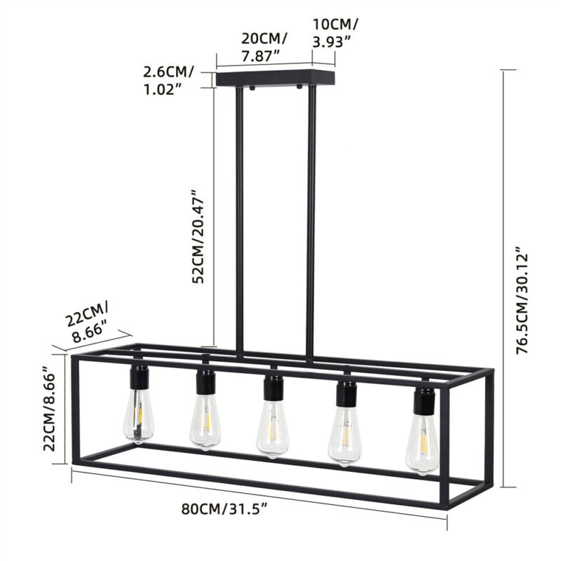Industrial Linear Chandelier Light Rectangular Metal Cage Table Pendant Lighting