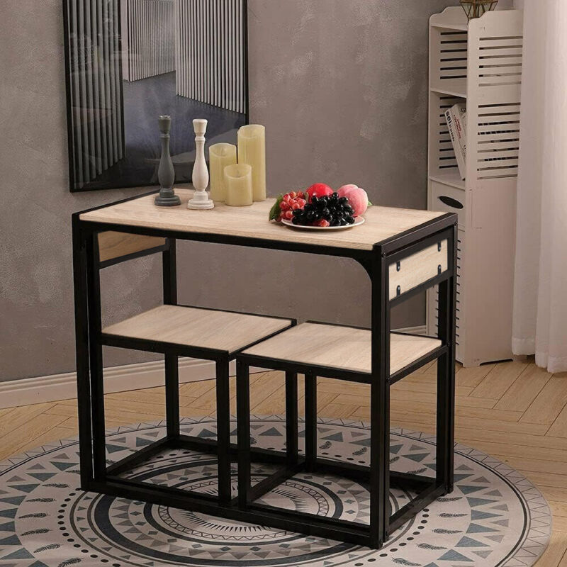 Industrial Living Room Dinette Table and Chair Set Small Space Compact Breakfast