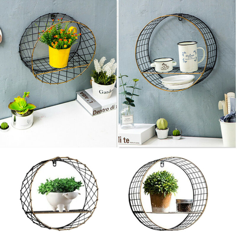 Industrial Metal Wire Folating Wall Shelves Unit Storage Display Shelf Art Decor