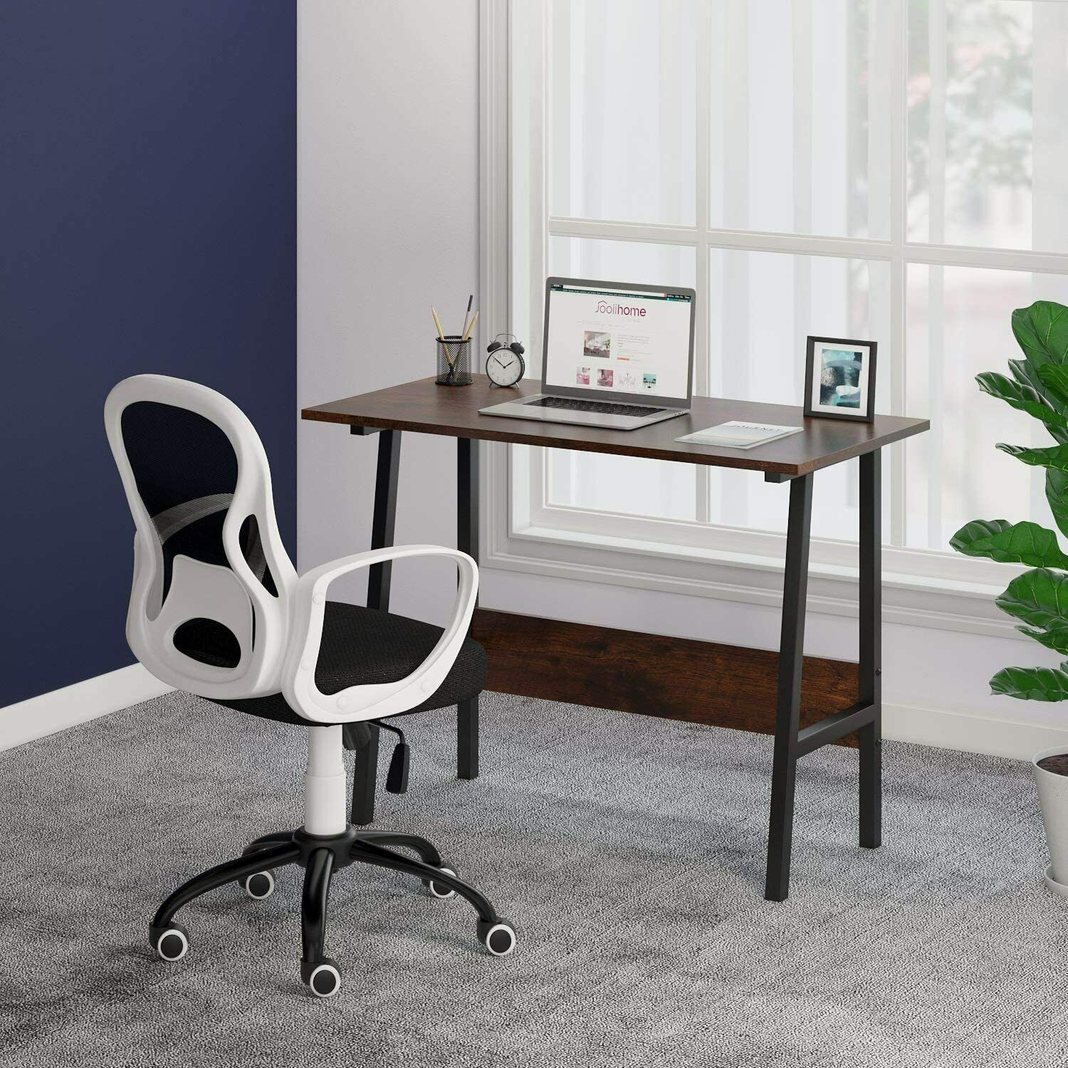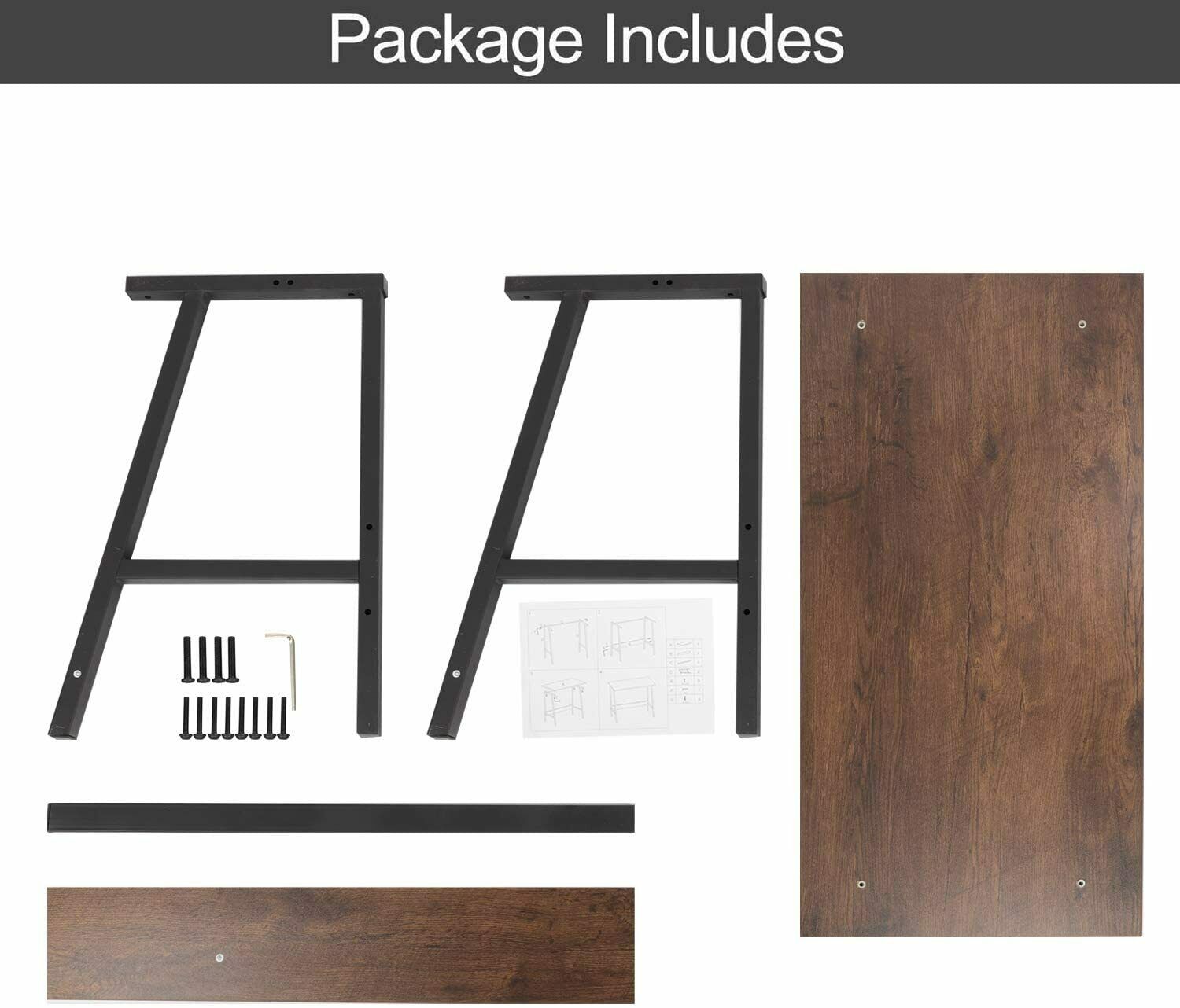 Industrial Office Desk Computer Table PC Stand Brown Wooden Black Metal Frame