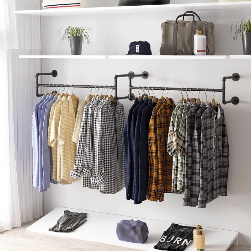 Industrial Pipe Bathroom Rack Wall Floating Shelf Clothes Rail Towel Holder Rod
