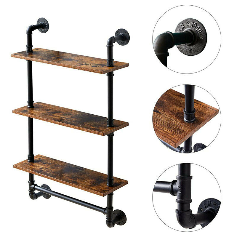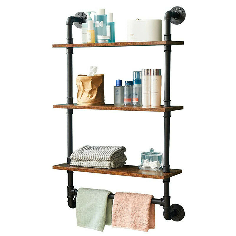 Industrial Pipe Bathroom Wall Mounted Floating Shelf with Towel Holder