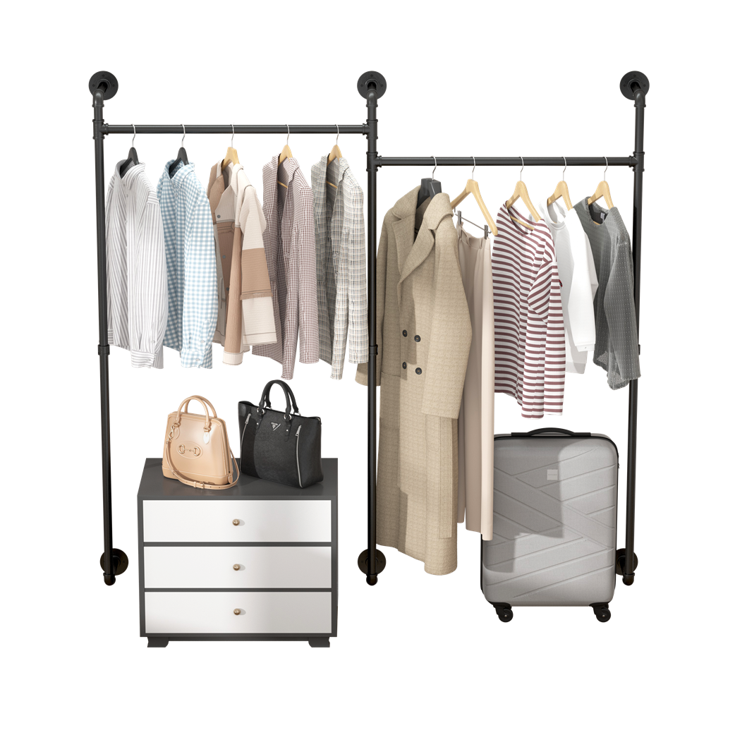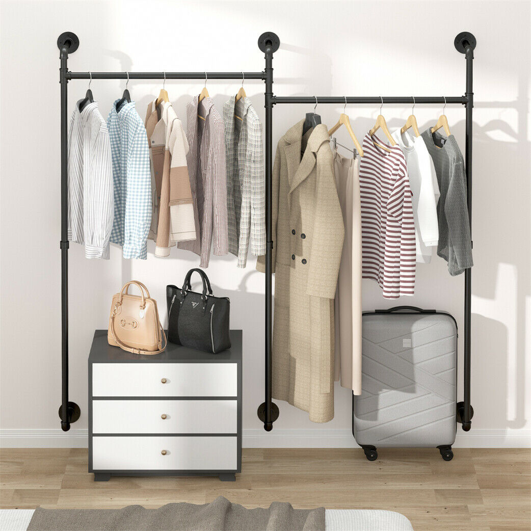 Industrial Pipe Clothes Rail Wall Mounted Garment Coat Rack Heavy Duty Long Pole