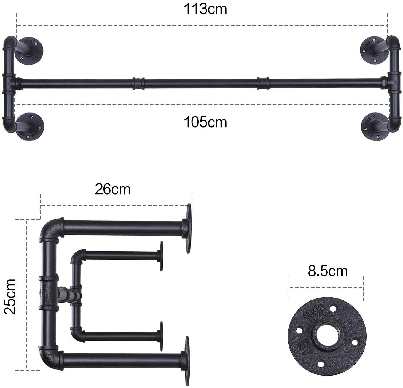 Industrial Pipe Clothing Rack Wall mounted Clothes Rail Hanging Display 92-105CM