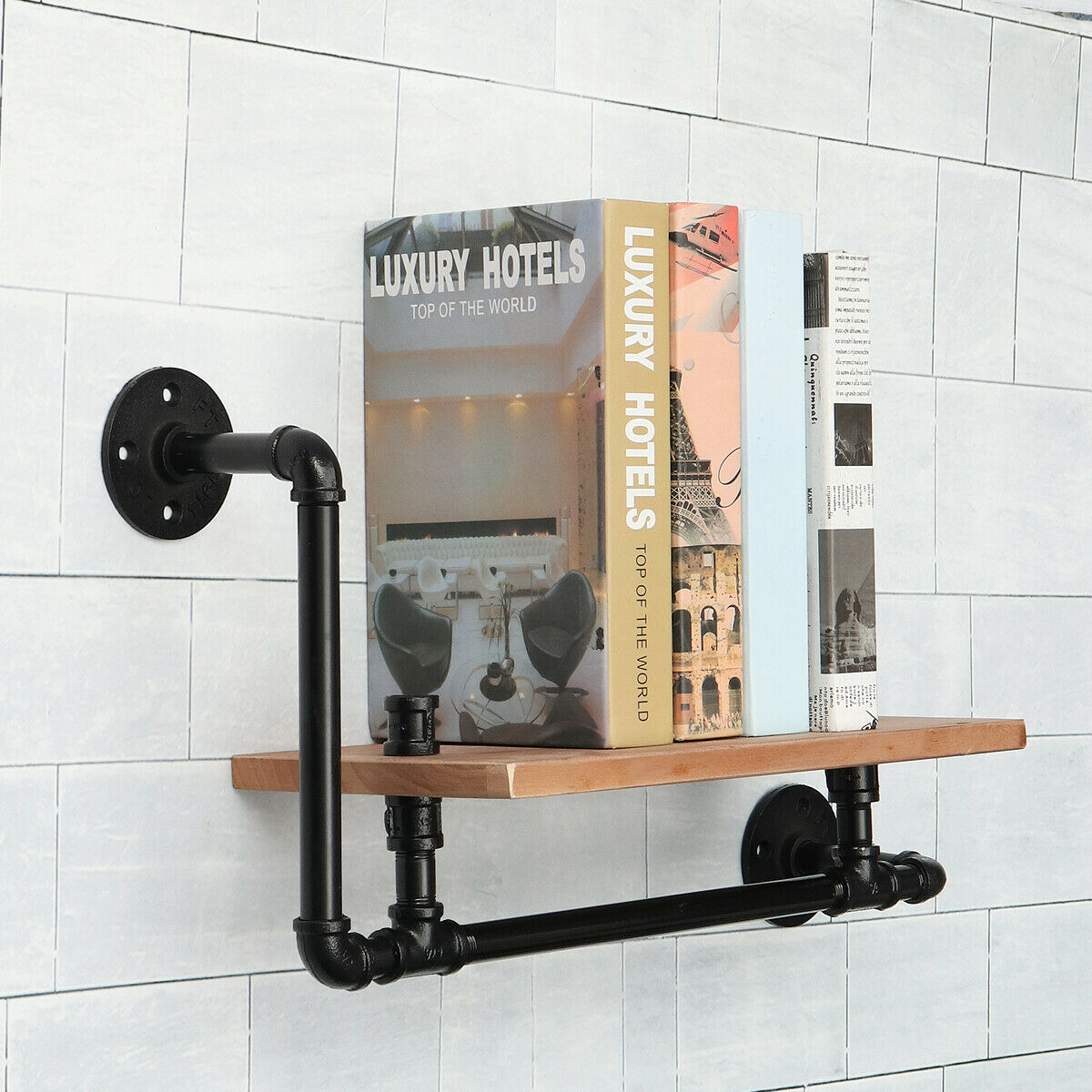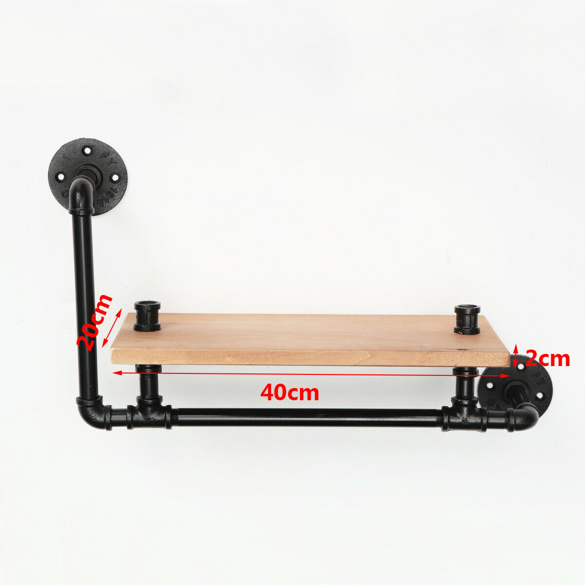 Industrial Pipe Wooden Wall Shelf Hanging Mounted Shelves Rustic Display Un