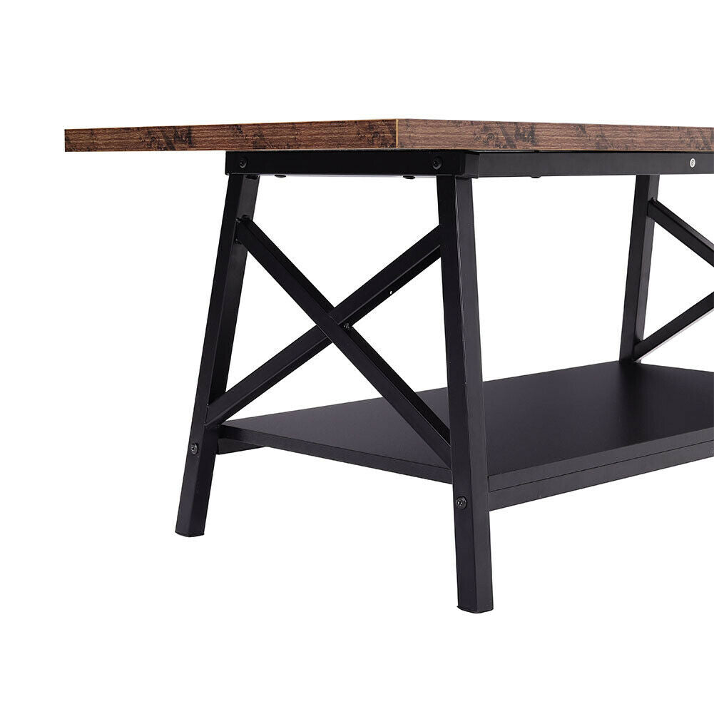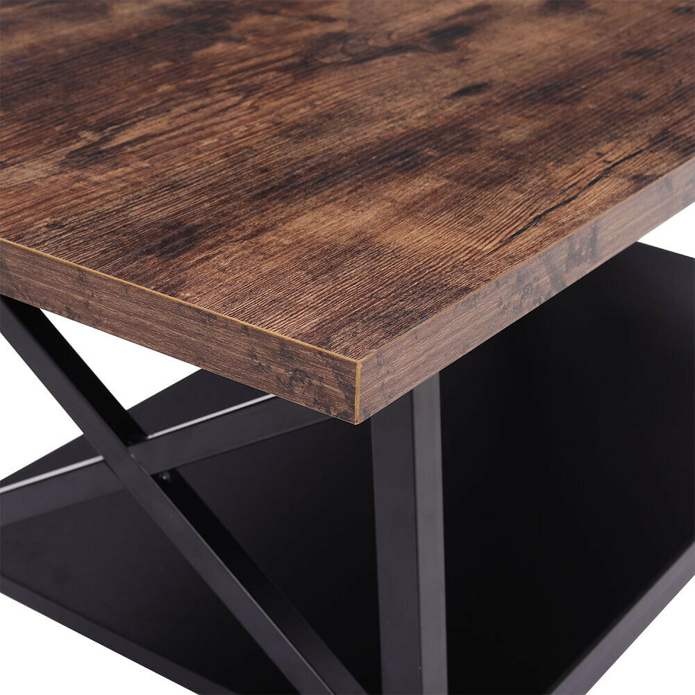 Industrial Rectangle Coffee Table 2 Tier Rustic Wood Living Room Table Metal Leg