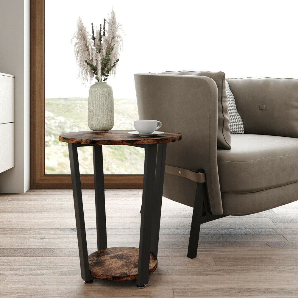 Industrial Rustic Wood Coffee Table 2 Tier Side End Table Lamp Telephone Stand