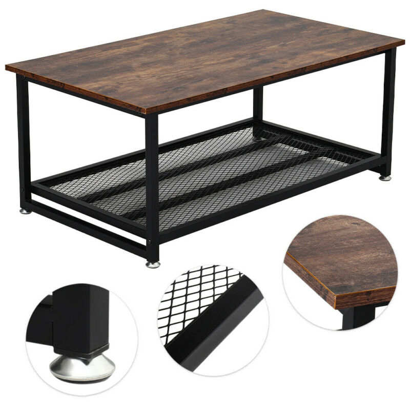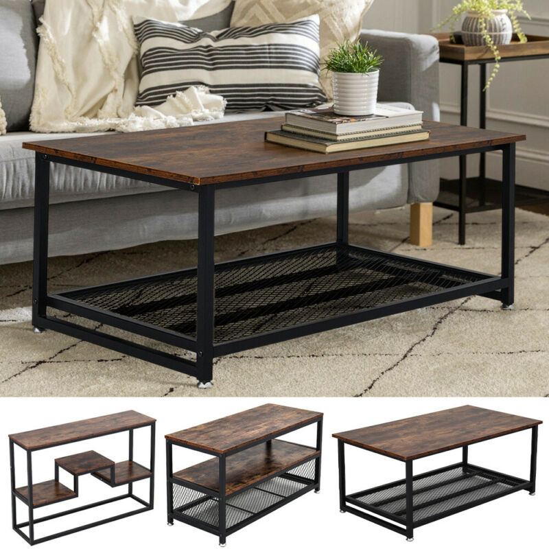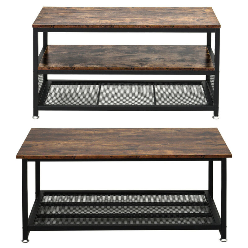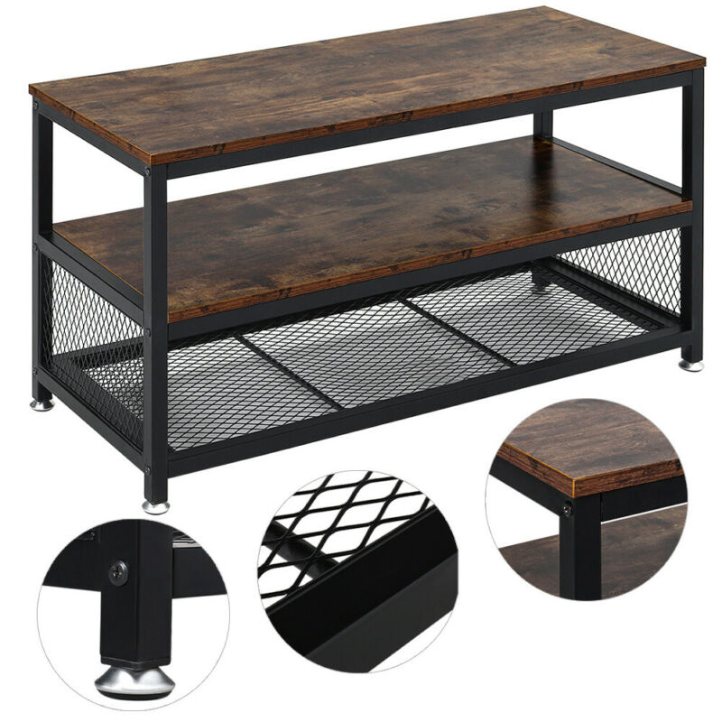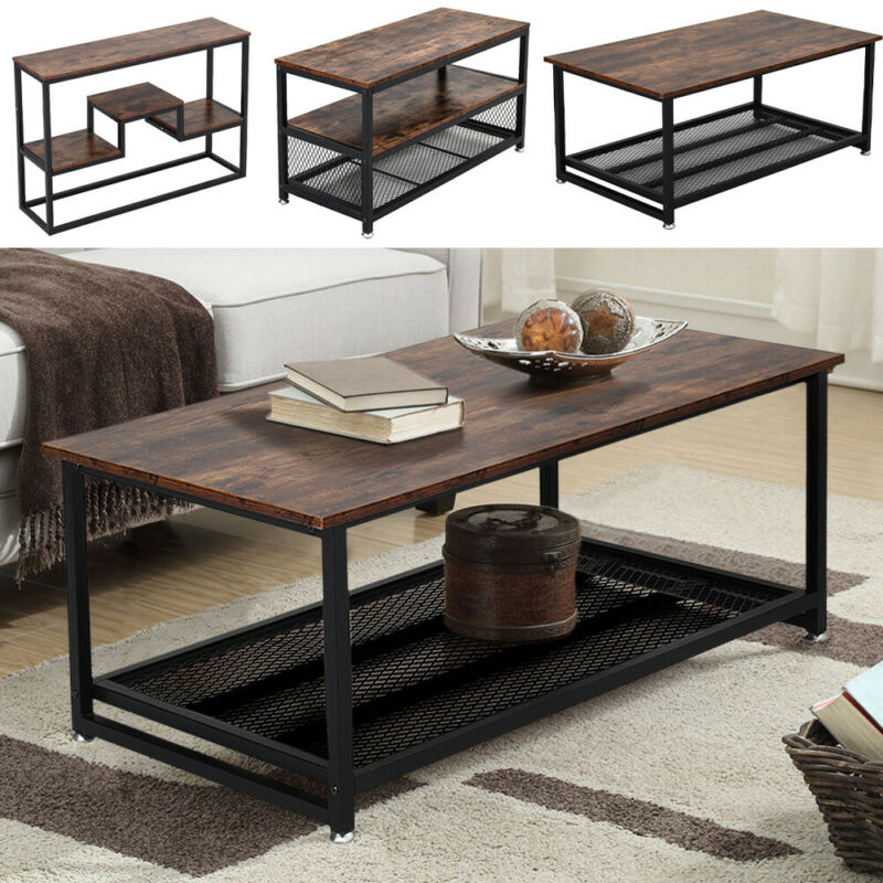 Industrial Rustic Wood Coffee Table Storage Display Shelf Console Table TV Stand