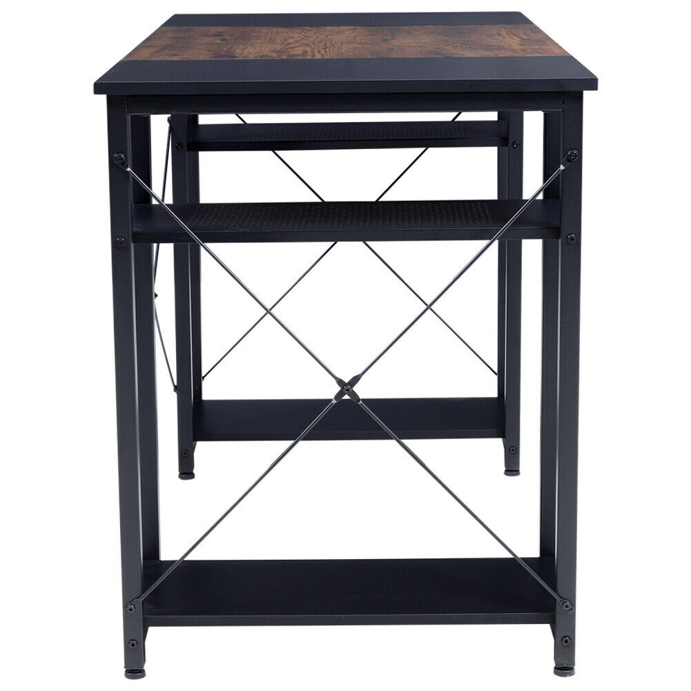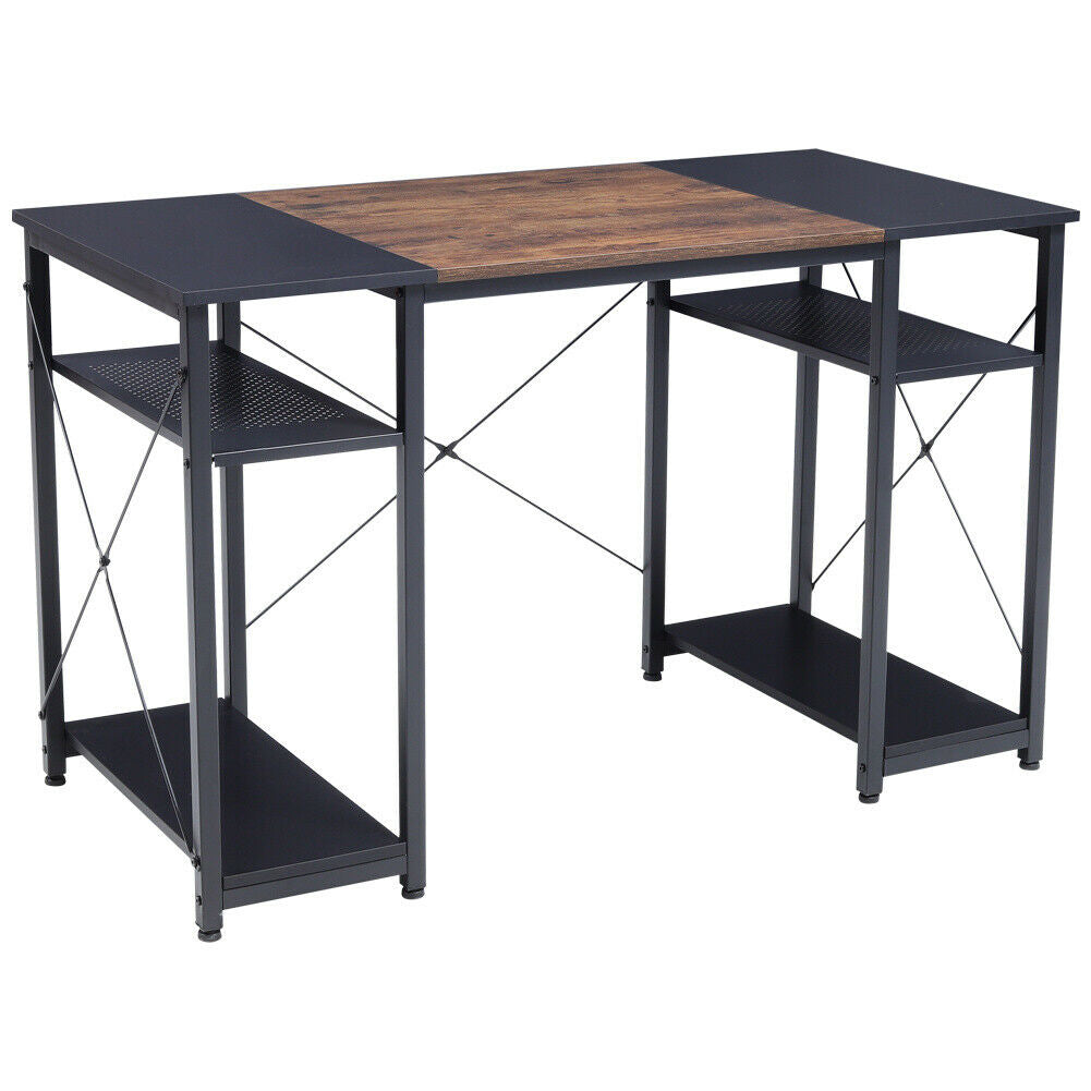 Industrial Rustic Wood Computer Desk with Storage Shelves PC Study Work Table